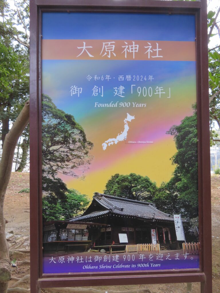 大原神社は平安時代の1124年に創建されました。ご祭神として、伊弉冉尊(いざなみのみこと)を祀っています。現在の社殿は1937年に氏子たちの大きな寄附によって、補修改築されたものです。