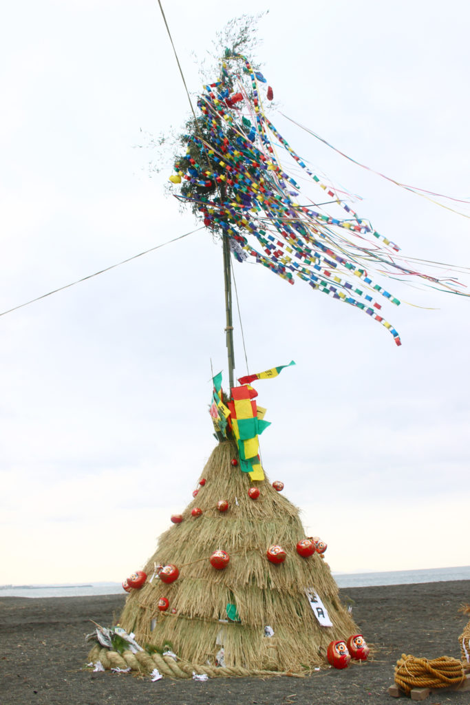 大磯の左義長の特徴の1つが、円錐形の9つのセエト(サイト)です!天高く建てられたセエトには正月飾りや縁起物が添えられ、カラフルに装飾されています。
