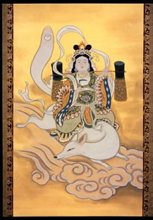 これら仏教のお稲荷さんで信仰されているのは、インド伝来の「荼枳尼天(だきにてん)」と呼ばれる夜叉。かつて人の心臓や肝を食らう夜叉(鬼女神)として恐れられていましたが、大日如来の霊力に心服して善神となったと言われています。一般に白虎に乗る女性の姿で現されるため、日本古来の(神道系)稲荷神と仏教のダキニ天との習合が進み、鎌倉中期頃からは、神仏両系の稲荷が並存・混合することになりました。