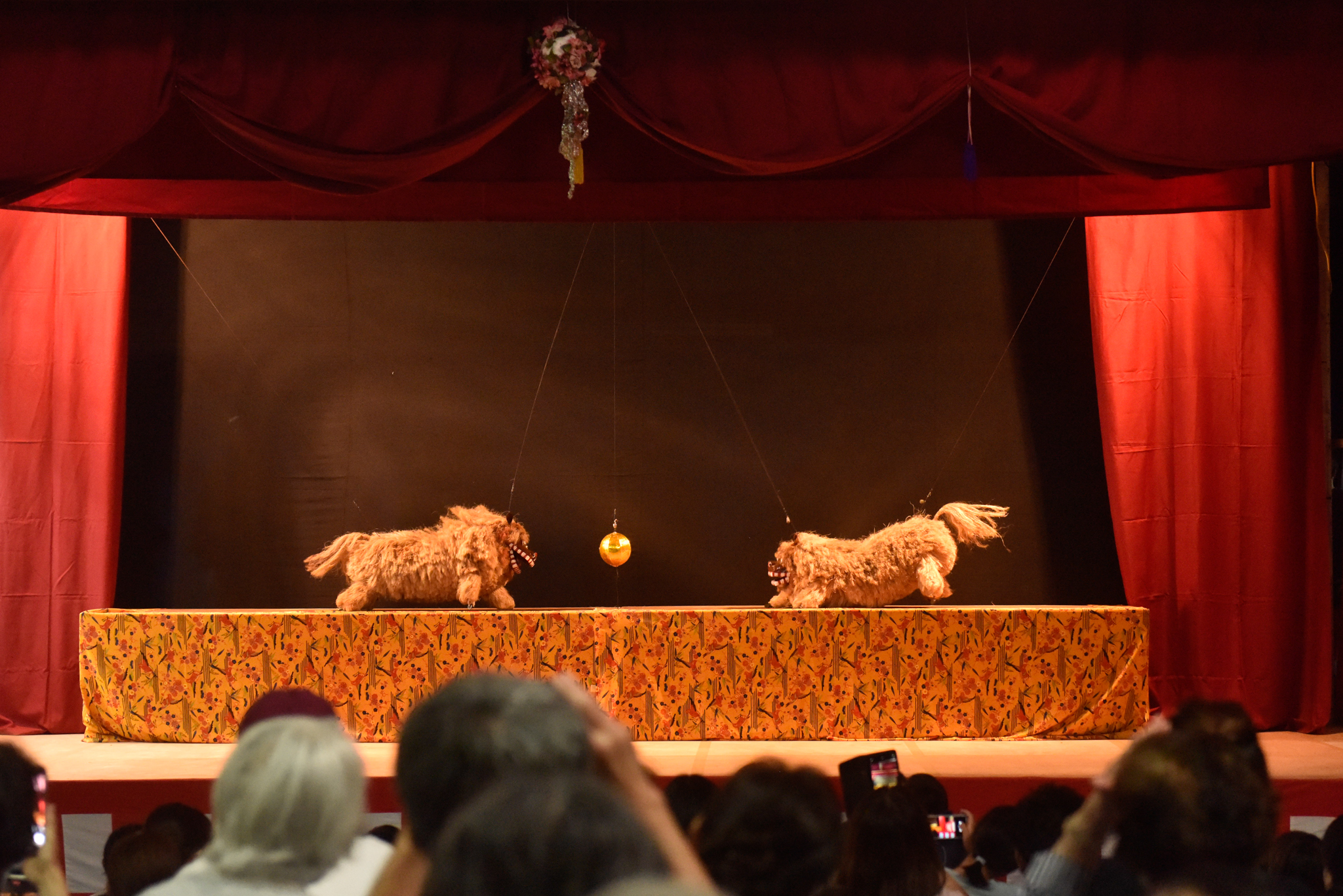 糸で操られる「謝名の操り獅子」(今帰仁村)