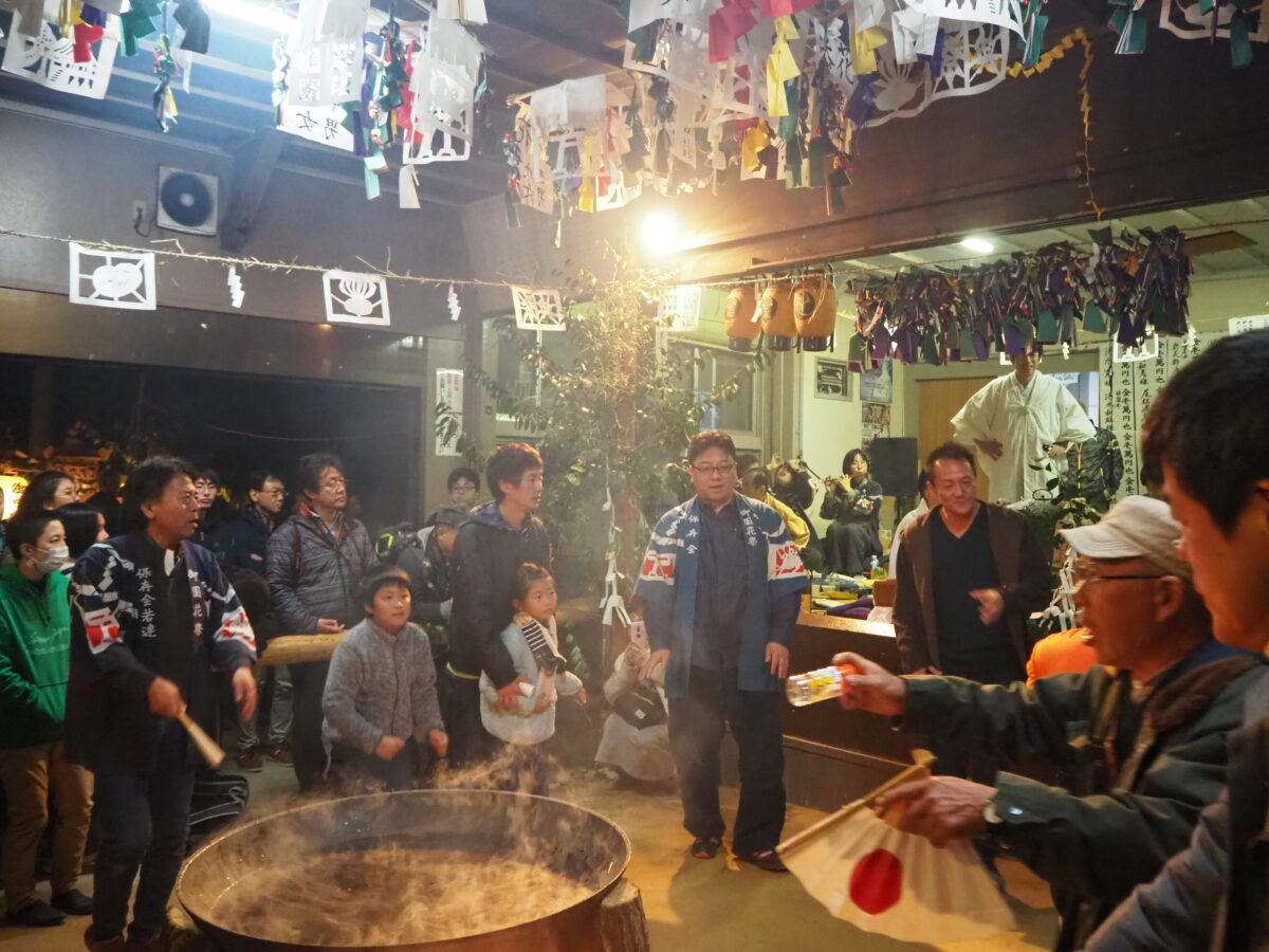 冬に行うので寒い。湯を立てるために焚き火をするので煙い。夜通しやるので眠い…ということで、ジョークまじりに別名「3むい祭り」とも呼ばれていたりします。