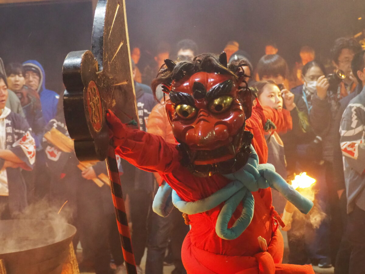 生命の再生を担う「鬼」が山から降りて来ると、祭りはクライマックスを迎えます。