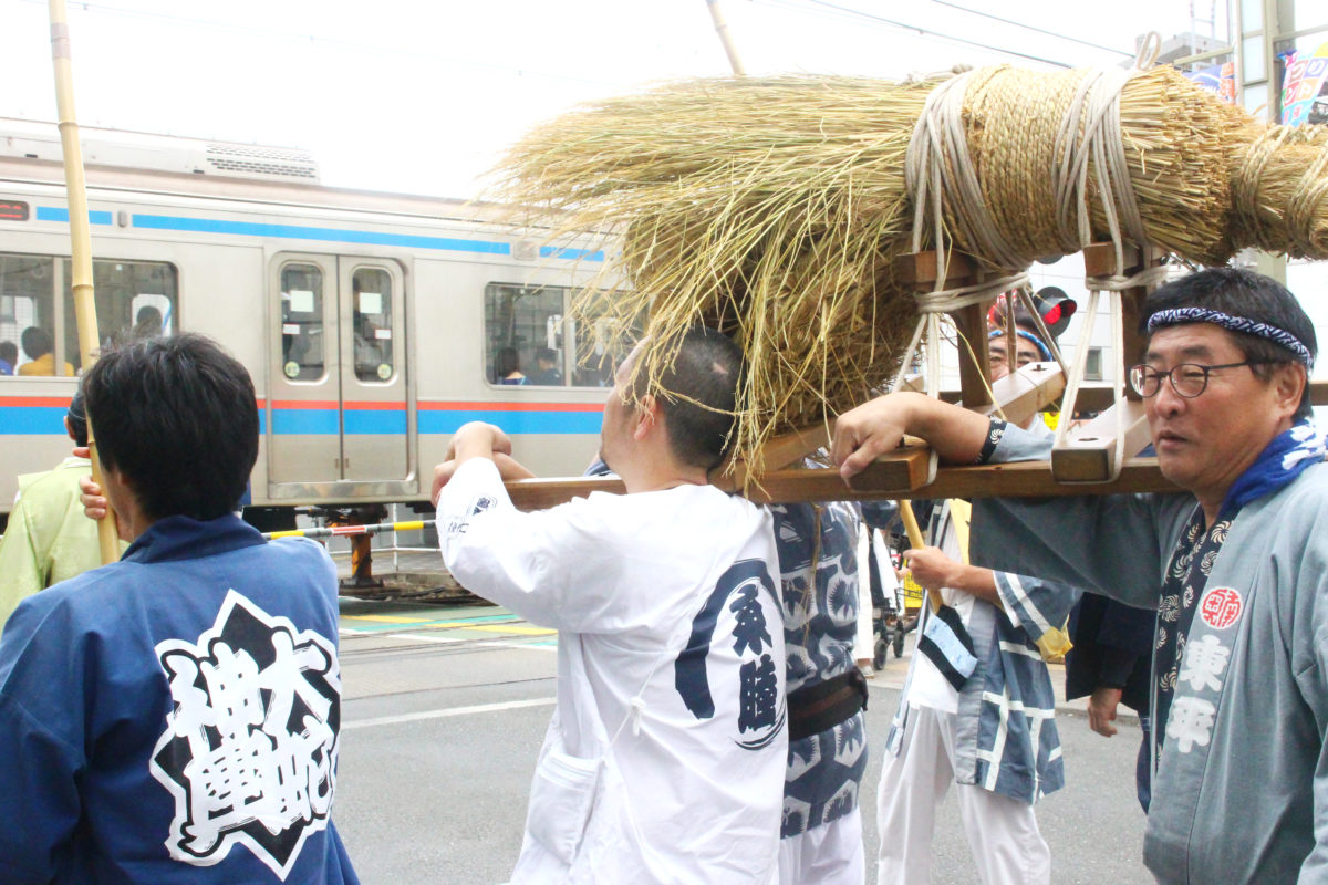 途中何度か大蛇は踏切を渡ります。お神輿が踏切を渡る光景は、都会の住宅街と言う立地ならではですね!