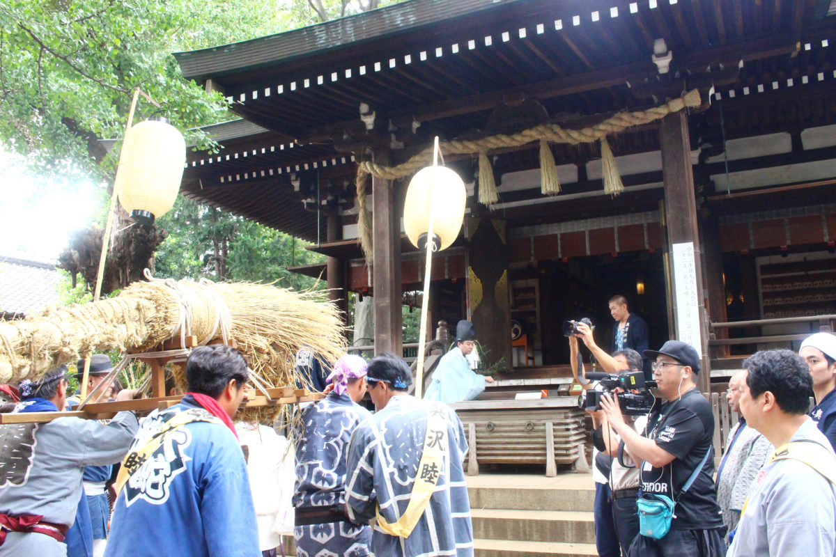 大蛇が奥澤神社境内へと入ってきます。狭い参道をワッショイワッショイ入ってくる様子は味があります!