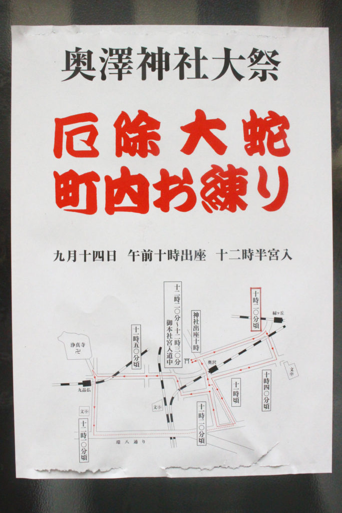 2023年9月9日・10日、東京都世田谷区で「奥澤神社例大祭 大蛇のお練り行事」が開催されます!