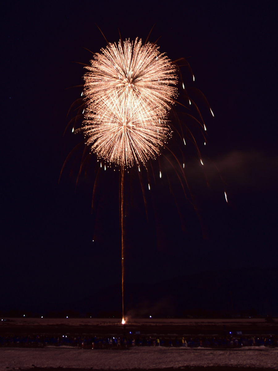 ここ大曲では、夏の他に、冬の3月・春の5月・秋の10月と、四季4回の花火大会が行われている。