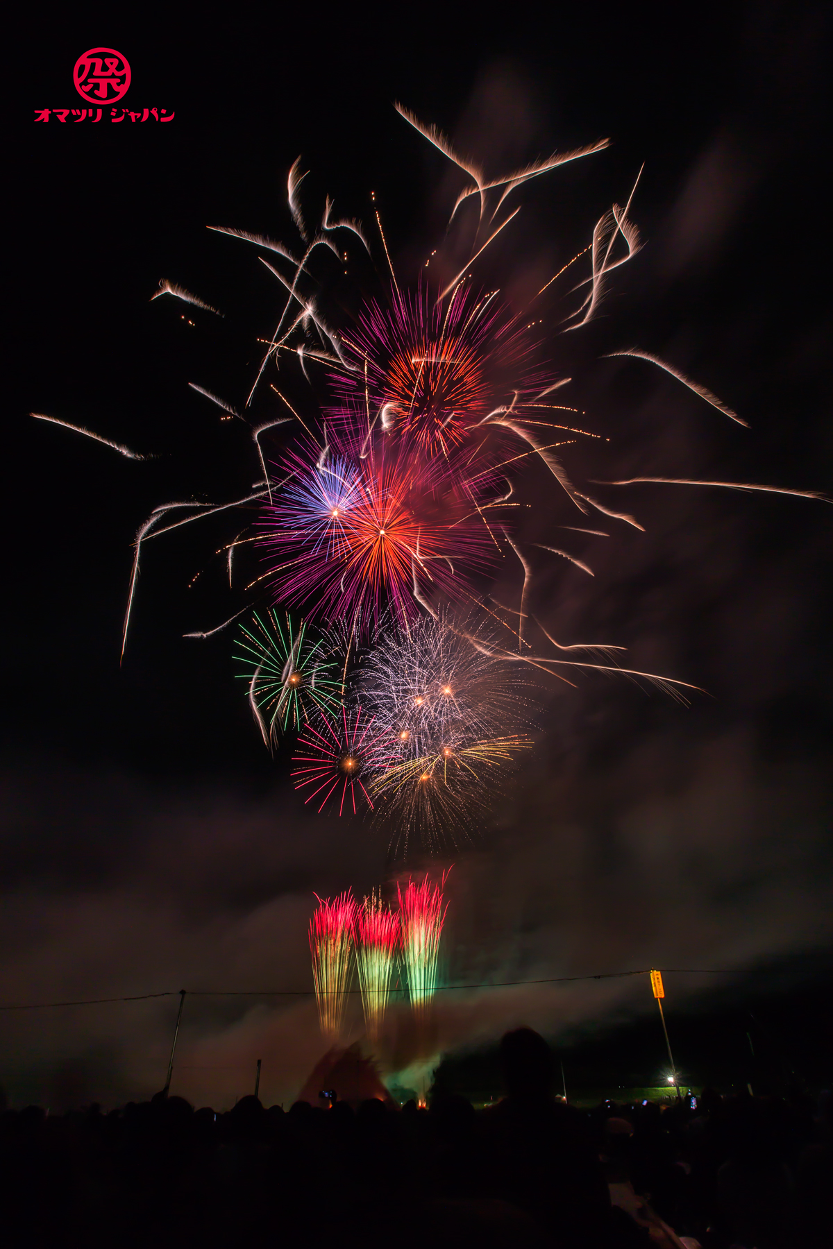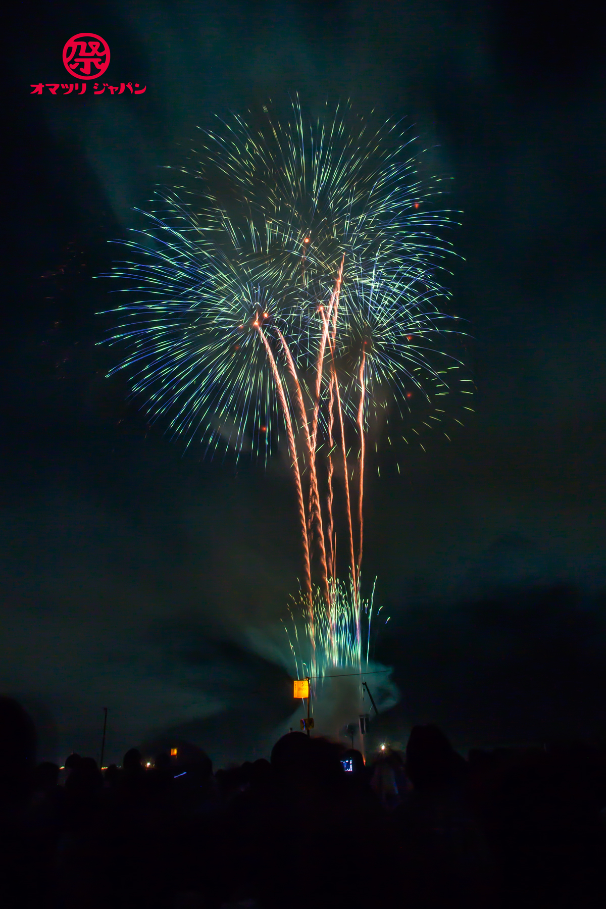 日本で大曲の花火でしか見られない昼花火の競技大会。5号玉(開花直径約150m)を5発打ち上げます。場所的に仕方ないとは言え、メイン会場が厳しい西日に晒されてしまう為、曇りの日でないと折角の昼花火が見えにくいのが難点です。