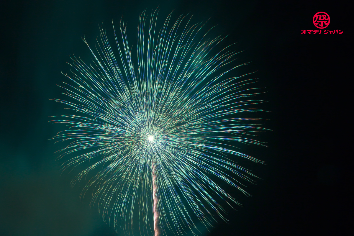 【優秀賞】(長野県)伊那火工堀内煙火店 24.昇り分砲付四重芯菊先緑銀乱