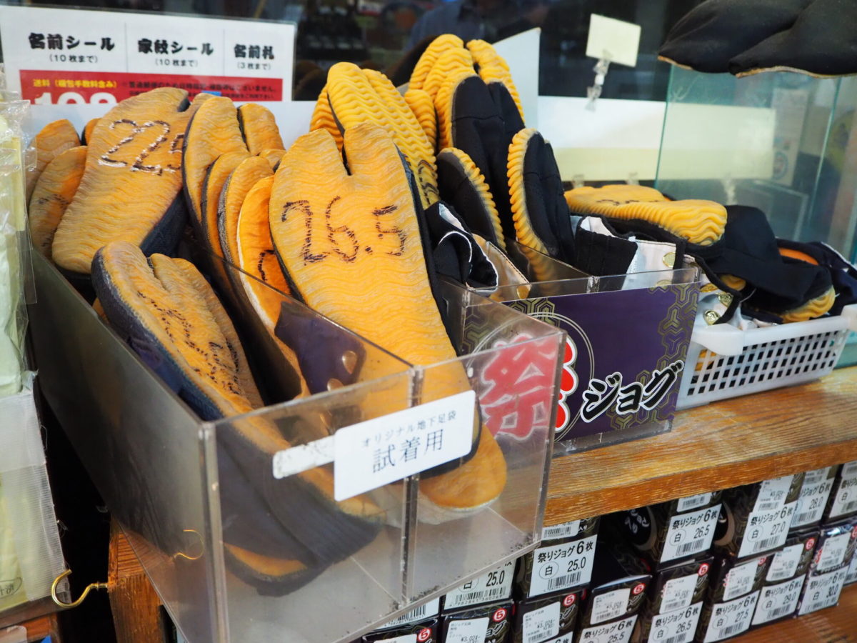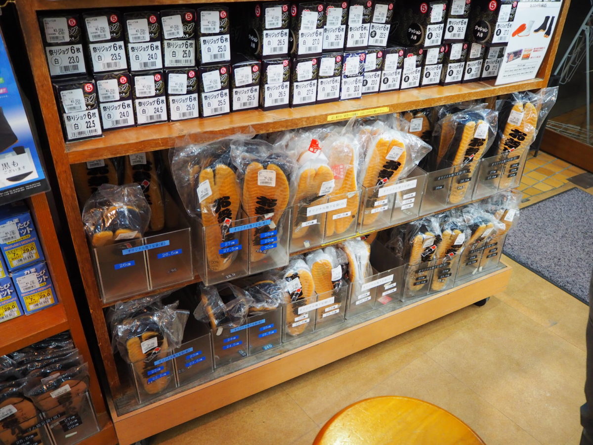おしゃれは足元から…ということで、まずは地下足袋のコーナーに向かいます。地下足袋だけでも種類がこんなに!