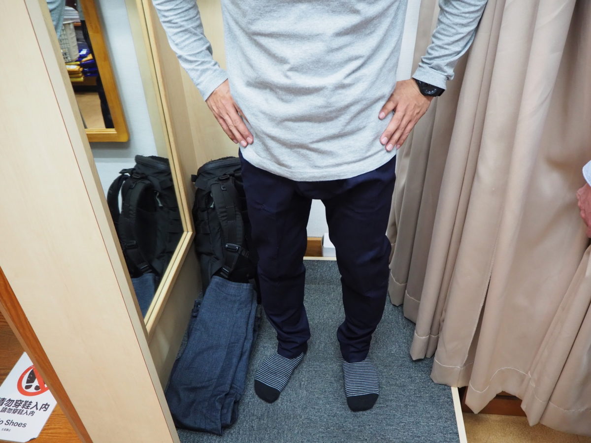 サイズの選び方ですが、スニーカーと同じように横に合わせて、指先は少し余るくらいが丁度いいとのこと。