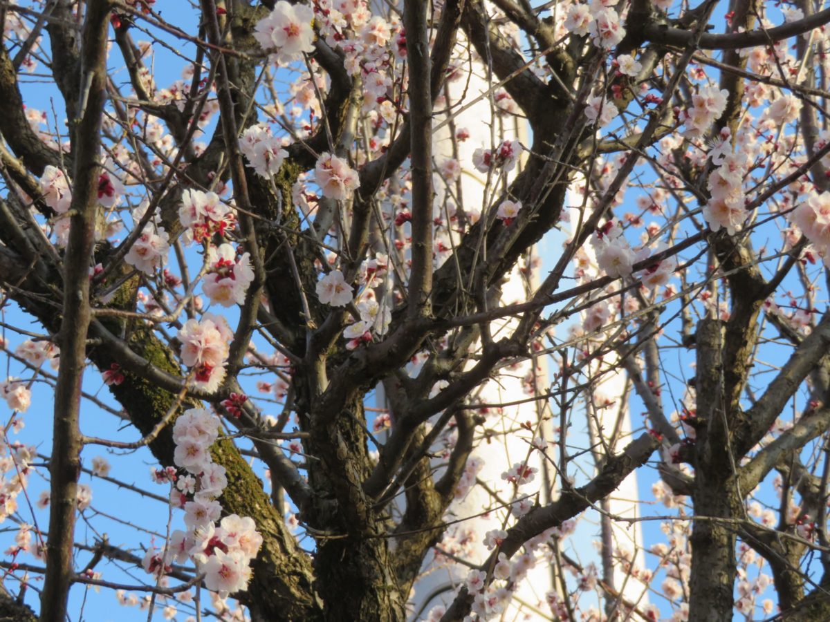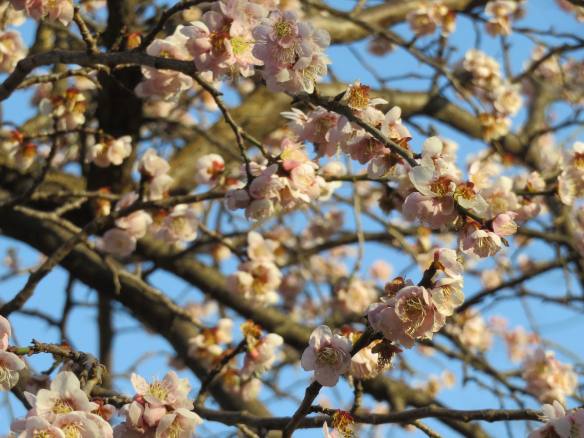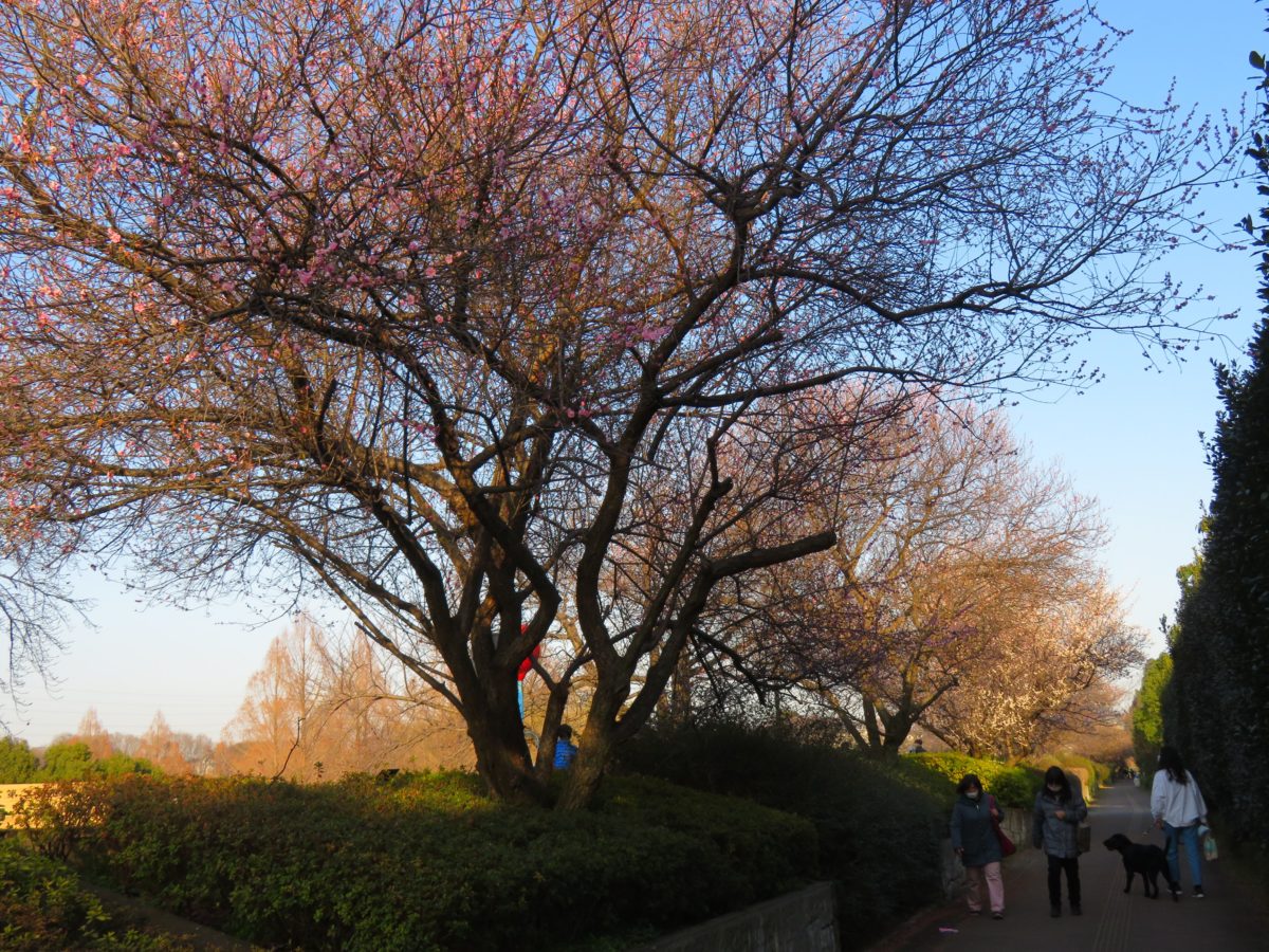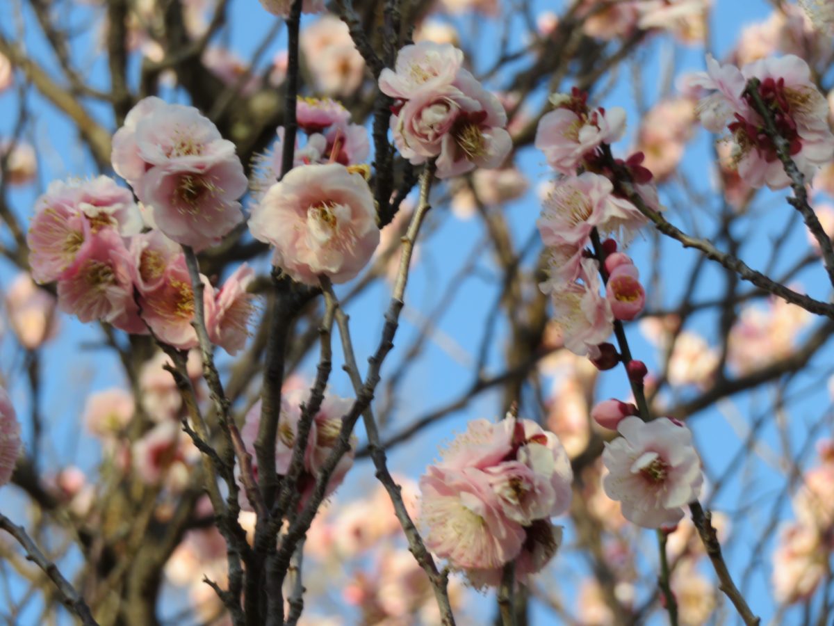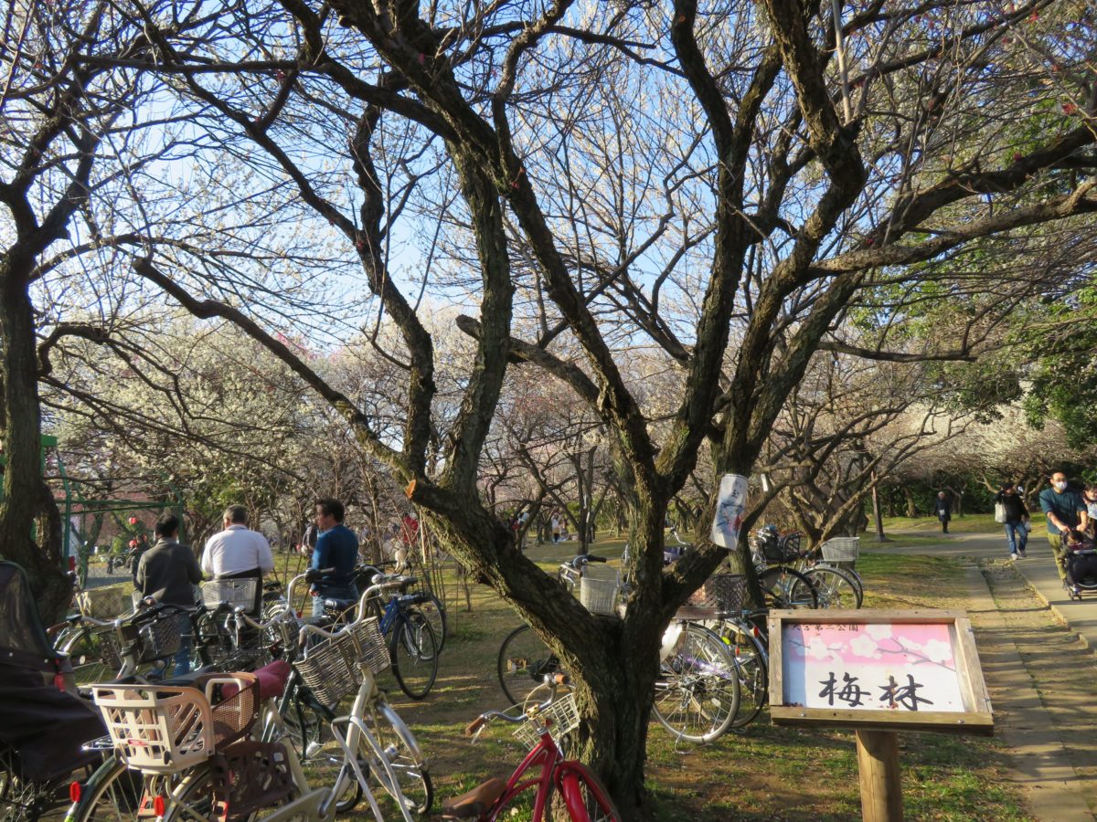 大宮第二公園では約40品種約500本の梅が園内の北西端近くの梅林で育っています。早咲きの紅梅は12月下旬頃に開花を始めますが、梅林全体が色づき見頃となるのは2月中旬から3月中旬です。