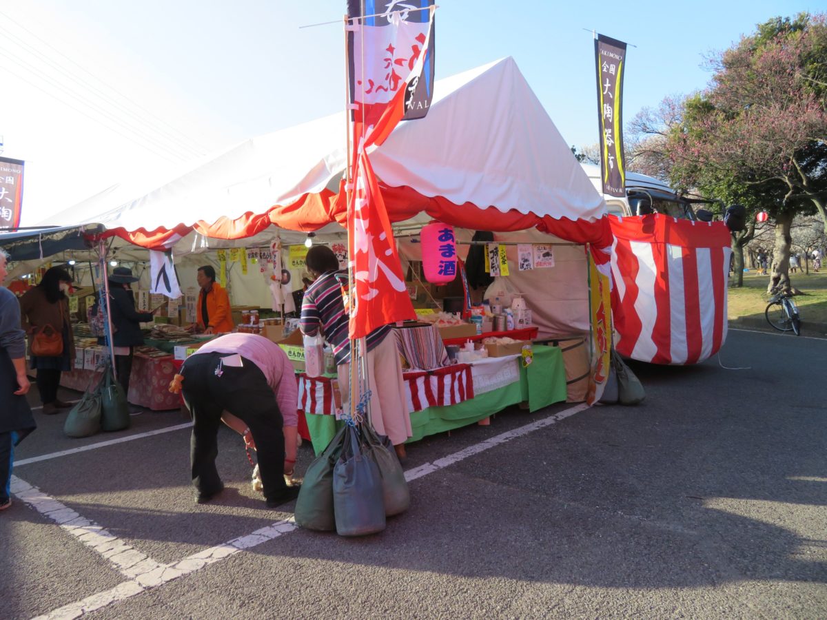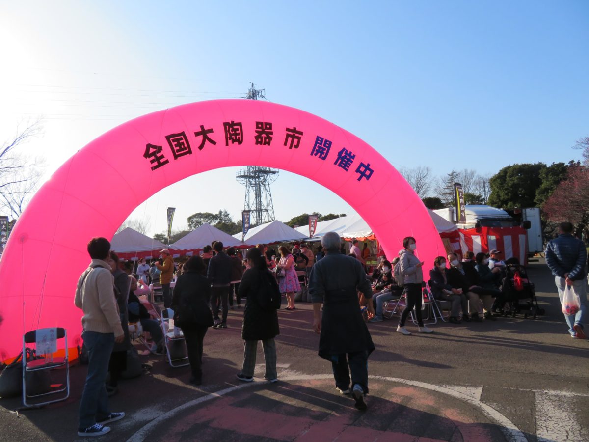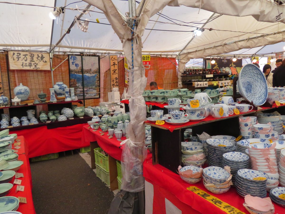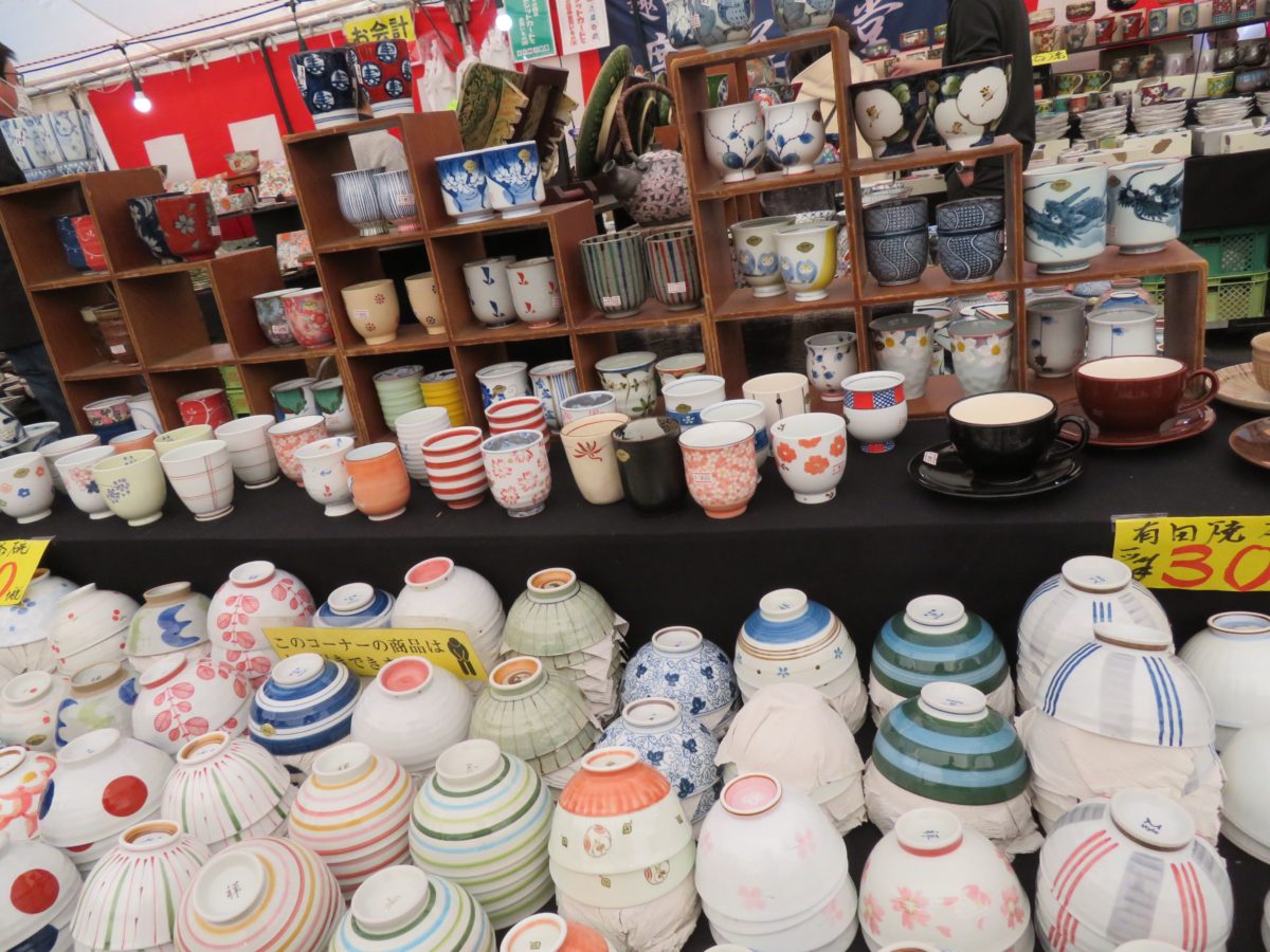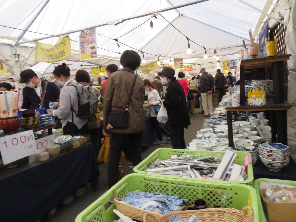 梅林沿いの駐車場では、大陶器市が行われます。伊万里焼、萩焼、備前焼、有田焼など全国有数の陶器が販売される大規模な市です。