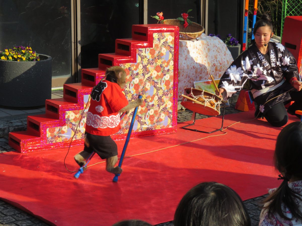 ギャラリー棟前で予告なしに行われた猿回しのイベント