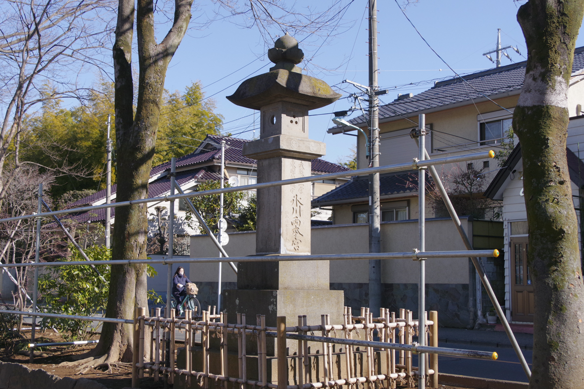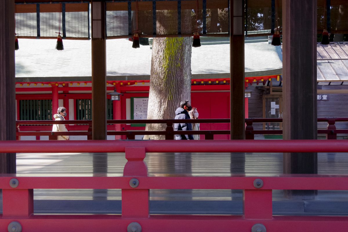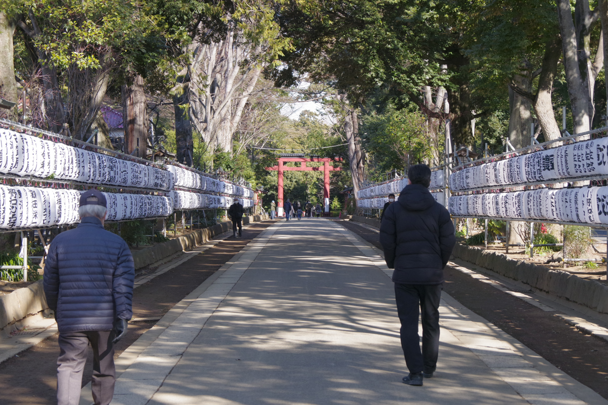 武蔵一宮氷川神社前の様子。参拝に向かう人たちの緩やかな流れができていました。