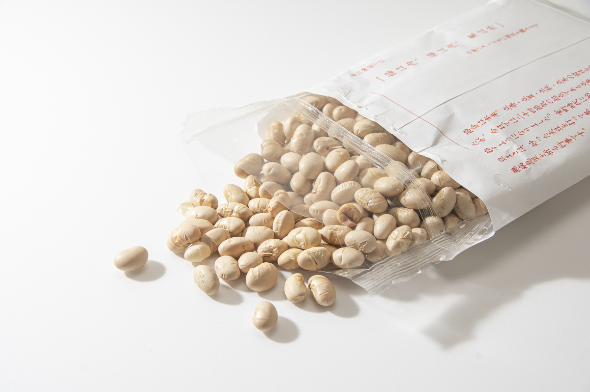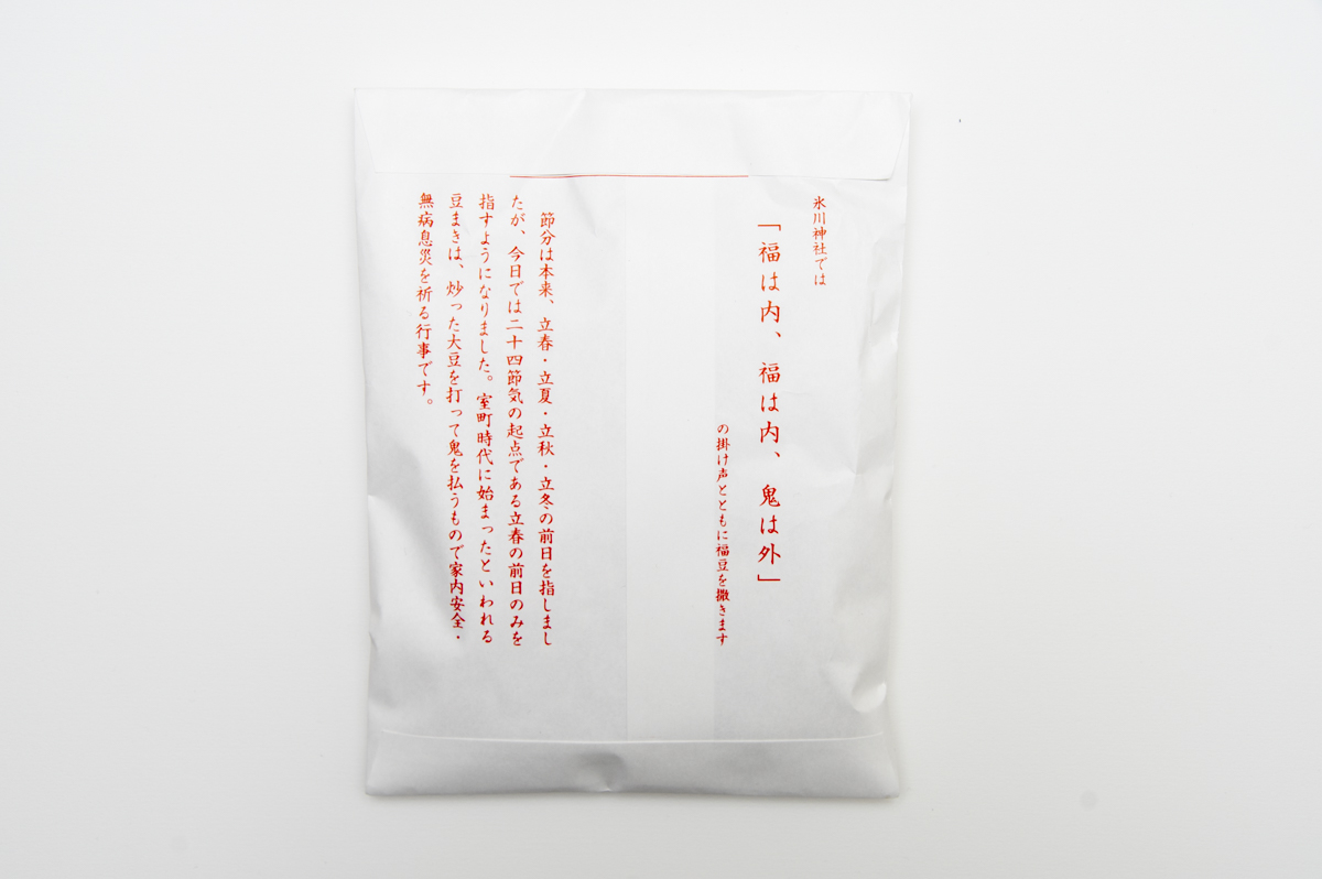 こちらは授与品の福豆。一つ一つ、個別に販売されており、封筒のなかにはビニールでしっかりと包装された福豆が入っています。