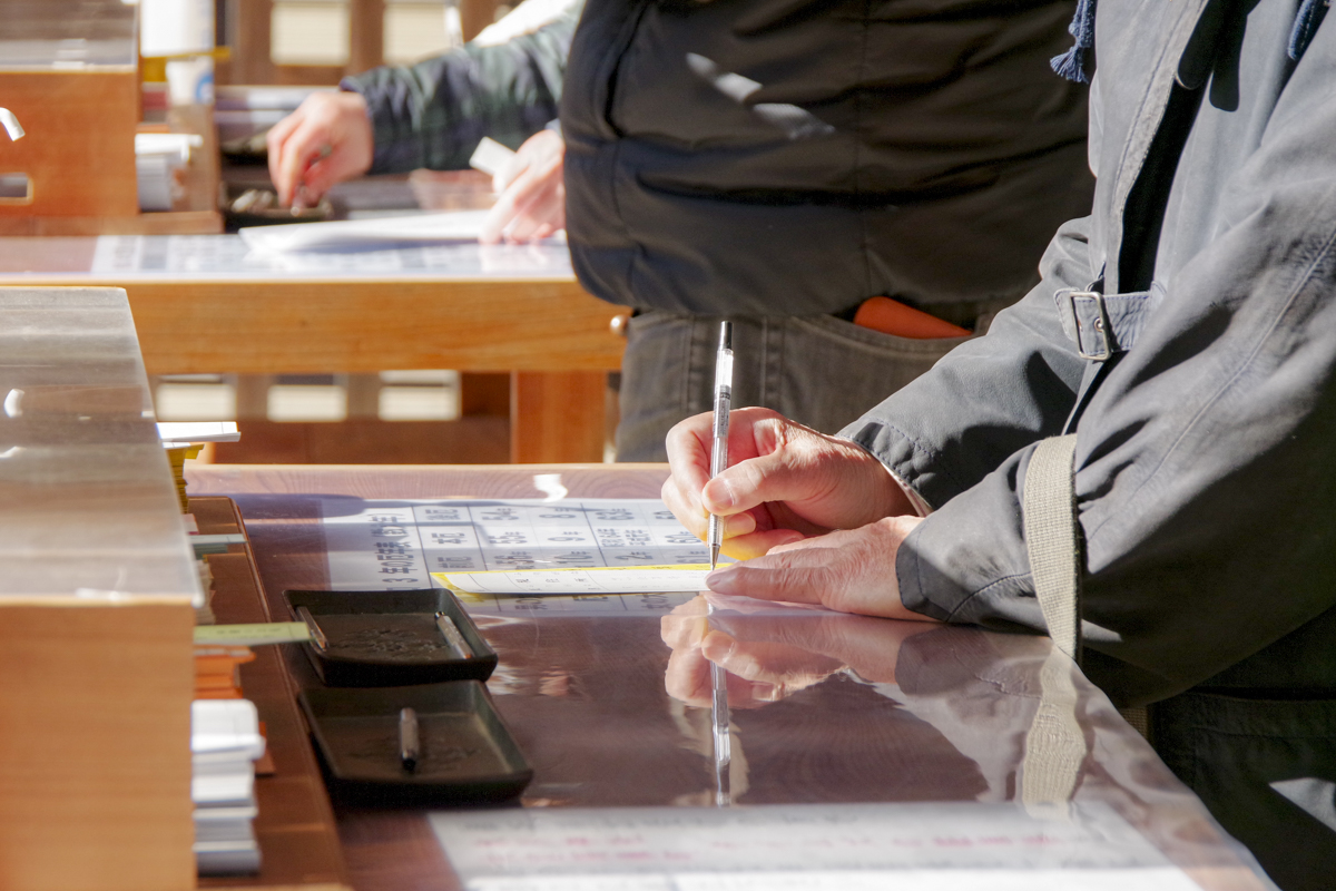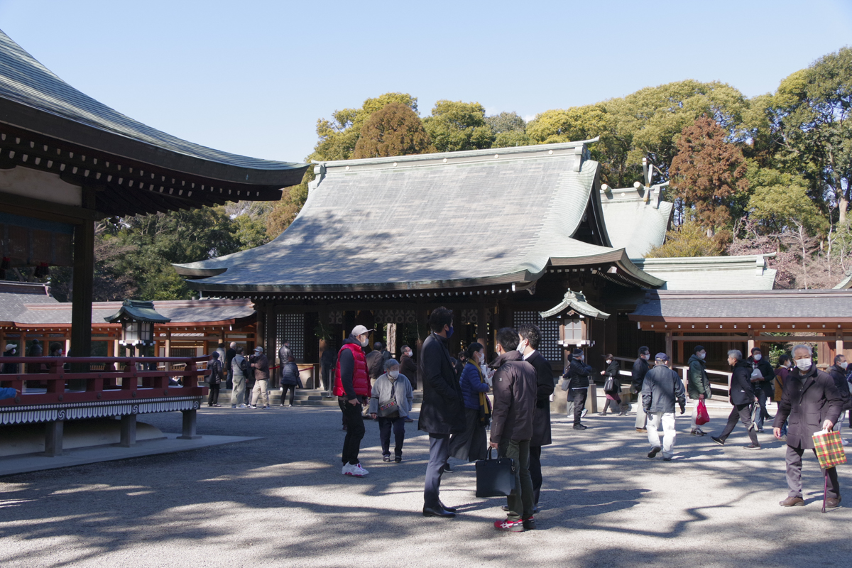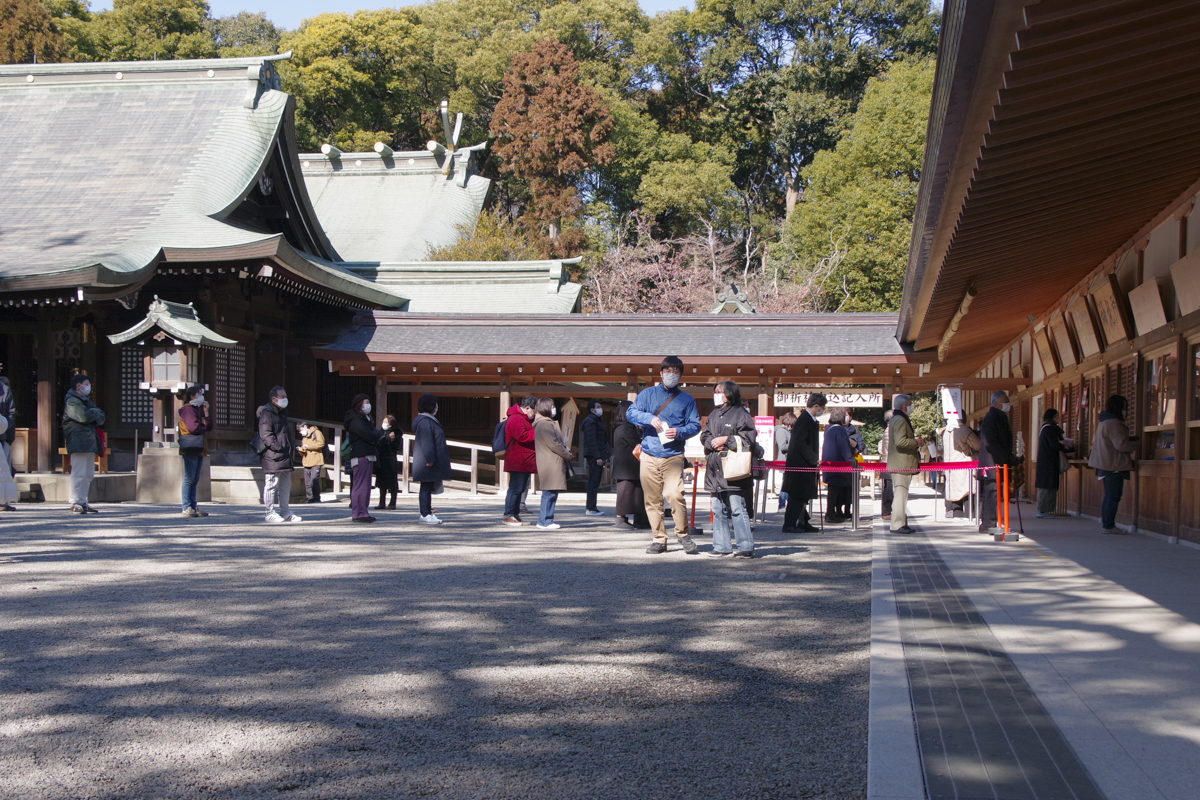 境内には参拝に向かう多くの人。しかし大声で話す人はおらず、マスクを着用し、列も距離をとって並んでいました。感染対策について、武蔵一宮氷川神社・遠藤権禰宜にお話を伺ったところ「アルコール消毒の設置を行い、節分の福豆を授与品として販売するなどをおこなっているが、基本的にそれぞれ参拝客の方々の個々の判断にお任せしている。」とのこと。神社からのメッセージはしっかりと参拝者の人々へ伝わっているようです。