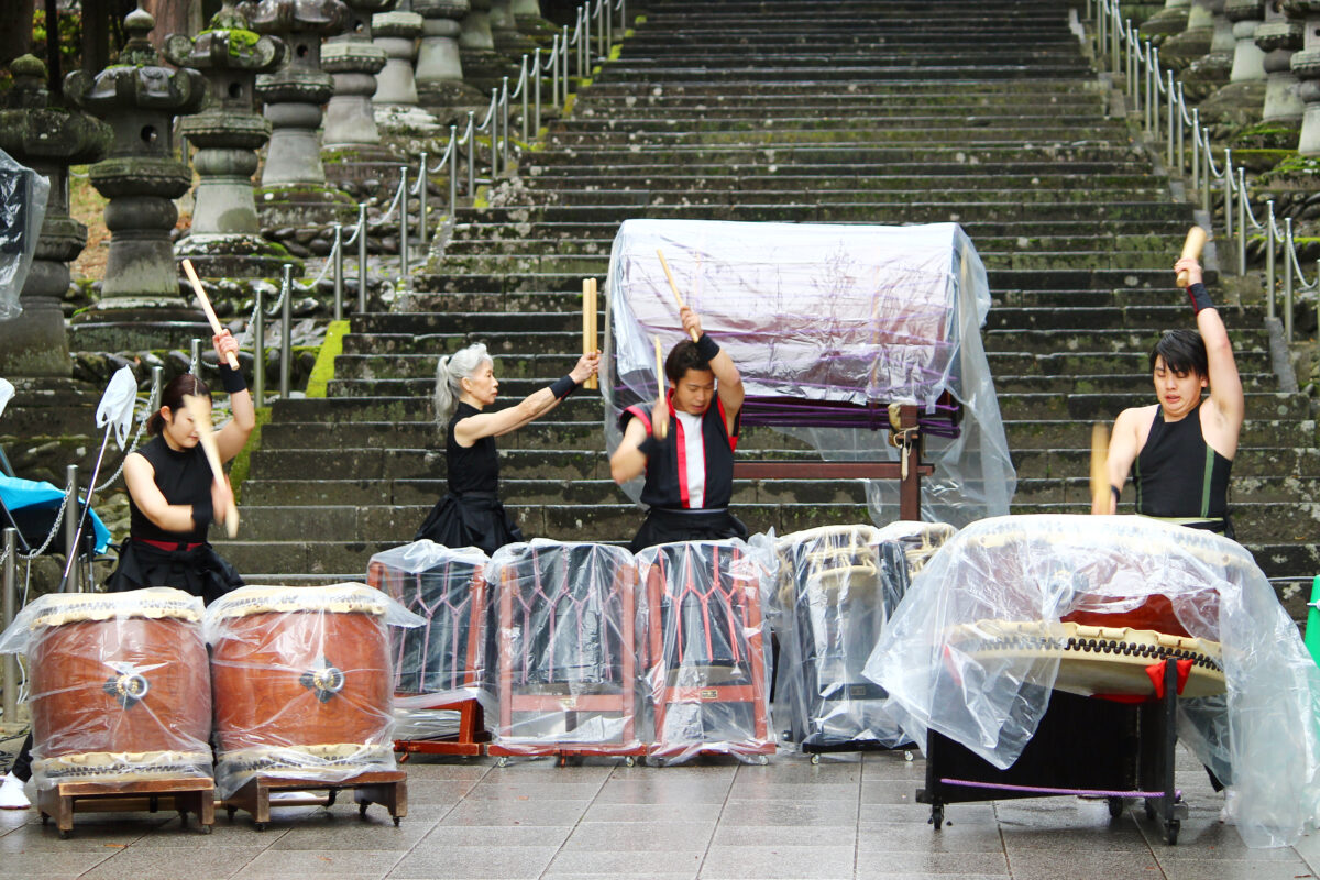 仙台市のお隣、利府町を拠点に活動する利府太鼓。荘厳な境内に、迫力のある太鼓の音が響き渡ります!