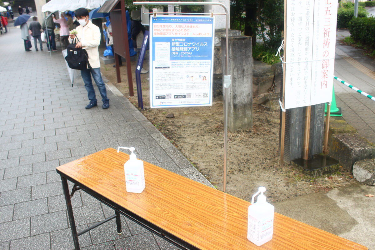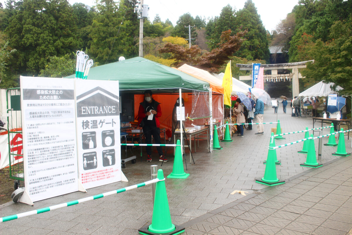 お祭り会場へ入るための境内入口には、感染症対策もばっちり取られていました。令和2年特有のものですが、しっかり検温を行います。