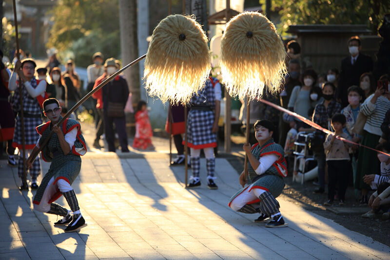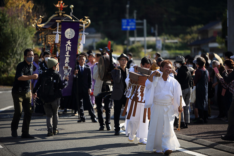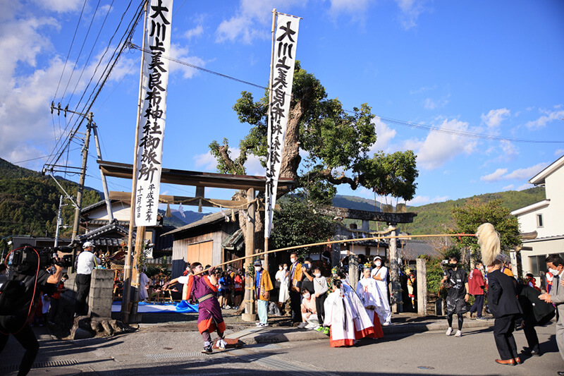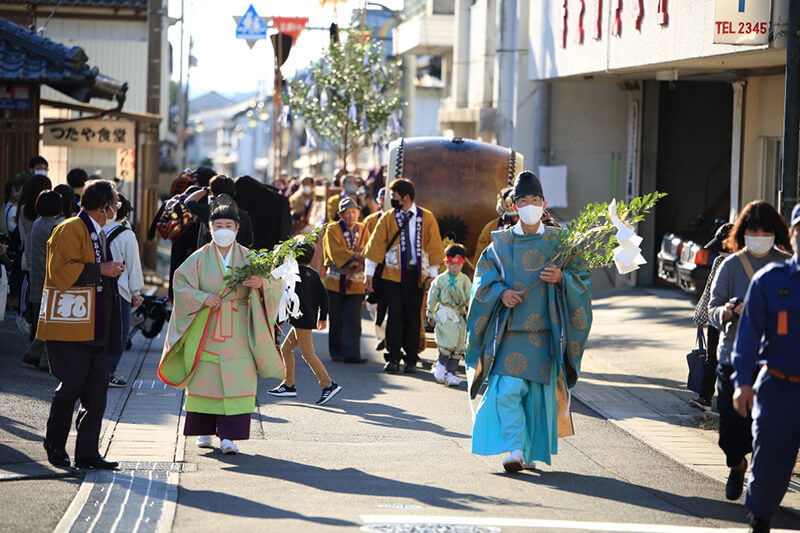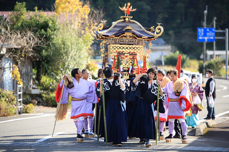 2022年11月3日(祝)、新型コロナウイルス感染症の影響で2年間中止されていた「秋季例大祭神幸祭:通称おなばれ」が3年ぶりに開催されました。おなばれは「年に一度の神様の遠足」ともいわれ、神様は神輿に乗って御旅所まで、「棒打ち」や「鳥毛」によって清められた道中を進みます。 今年は天候にも恵まれ、200人のおなばれ大行列をひと目見ようと多くの方で賑わいました。当日の現地の様子をレポートしながら、今回の開催を振り返ります。
