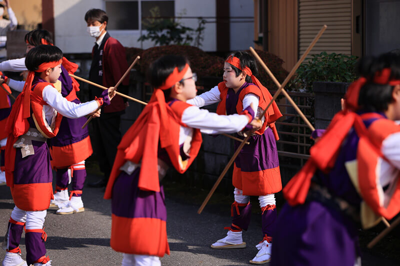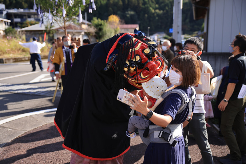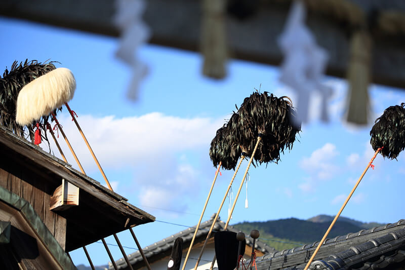 お獅子に頭を噛まれて泣き叫ぶ子どもの声に笑い声が起こります。沿道の方々の頭上を鳥毛がふわりと撫でると、皆ありがたく神妙な顔でお祓いを受けています。