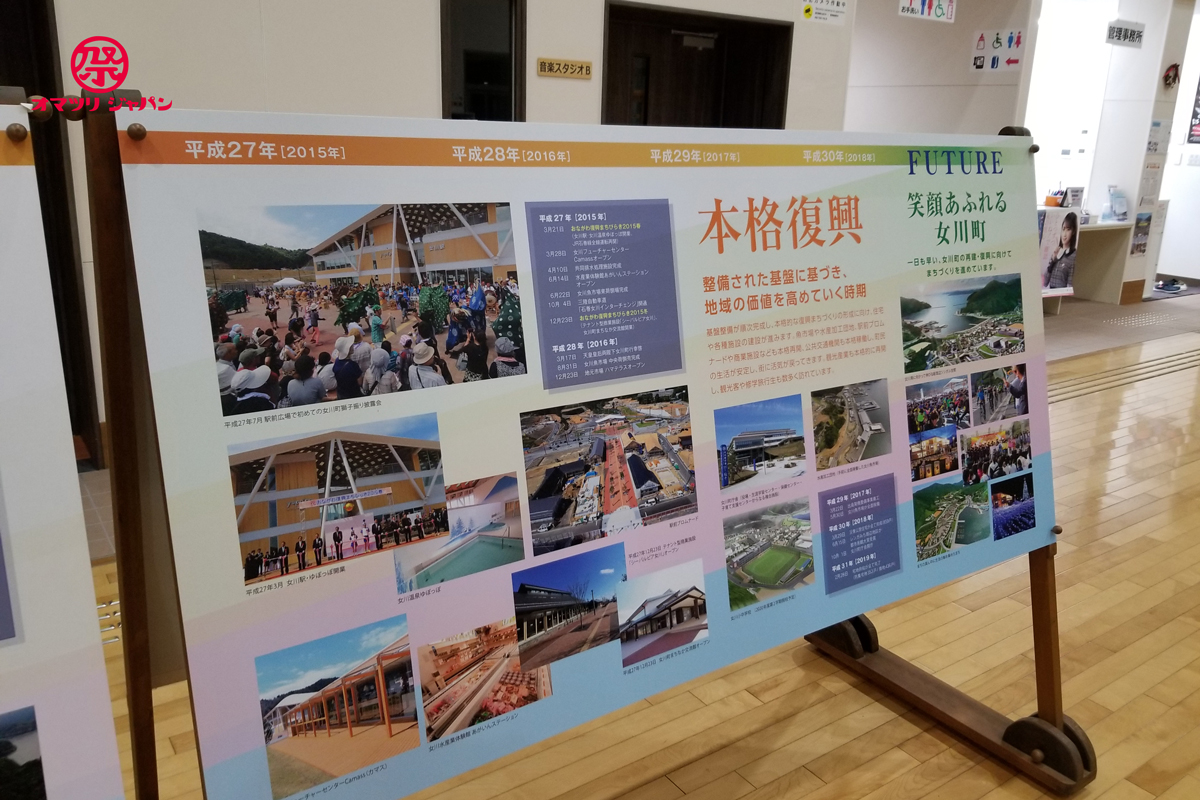 また、セレモニーの挨拶でもありましたが、新しい建物ができて便利になっても、一度出て行ってしまった人は戻って来なかったりと町の人口が増えない事に頭を悩ませている様です。現在は少子化の時代なのでなかなか難しい問題だとは思いますが、今後はこう言ったイベントをたくさん行い女川町に住みたくなる様な街づくりをしていきたいとの事でした。あれほどの壊滅的な状況から立ち直り、再び前を向いて進む女川町を見られて良かったです。