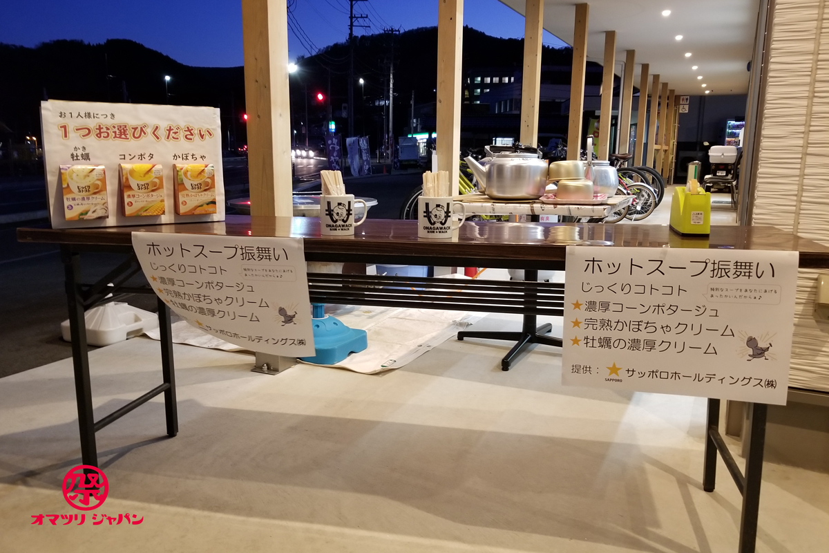 夜間は冷えるのでホットスープが振舞われます