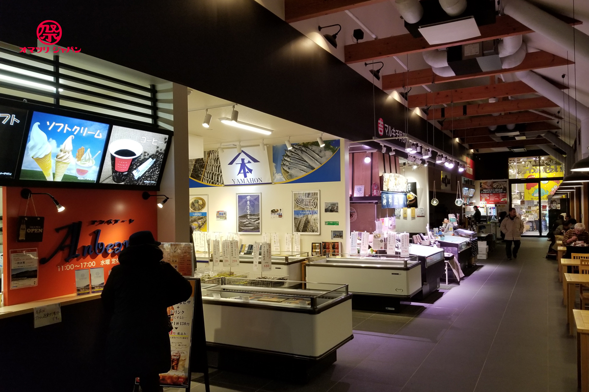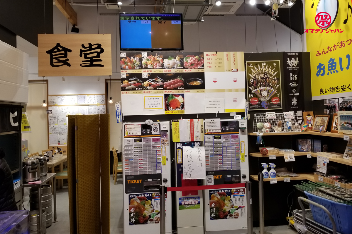 翌年には、その一角に地元市場として新しくハマテラスが完成しました。女川町はリアス式海岸を有する天然の港であり、漁業を行うには最適な場所に位置しています。ホタテやカキなどの養殖漁業が盛んで、また沖に出ると漁場も近く、特にサンマの水揚げ量は日本でも有数な地域です。ハマテラスでは、そんな新鮮な魚介類が味わえる飲食店や販売店の8店舗が集まって出店しています。