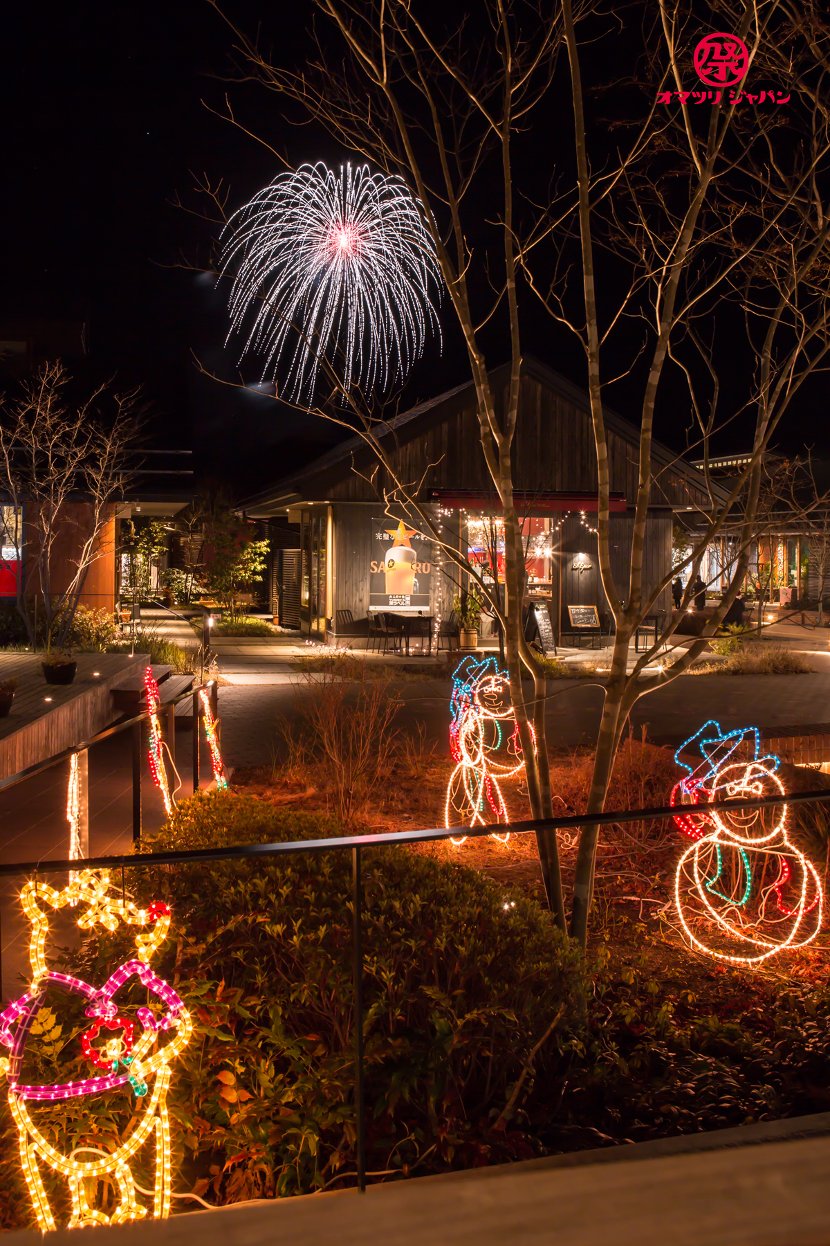 カウントダウンの掛け声と共に18:20からは花火の打ち上げが行われました。担当は宮城県仙台市の芳賀火工になります。ウィンターソングや流行曲と共に最大4号玉で約3,000発の花火が打ち上がりました。特に型物花火の形や向きが映えており、普段はあまり見られない貴重な宮城県の花火を堪能できて良かったです。また周辺には様々な添景物もあるので撮影目的でも色々と楽しめました。