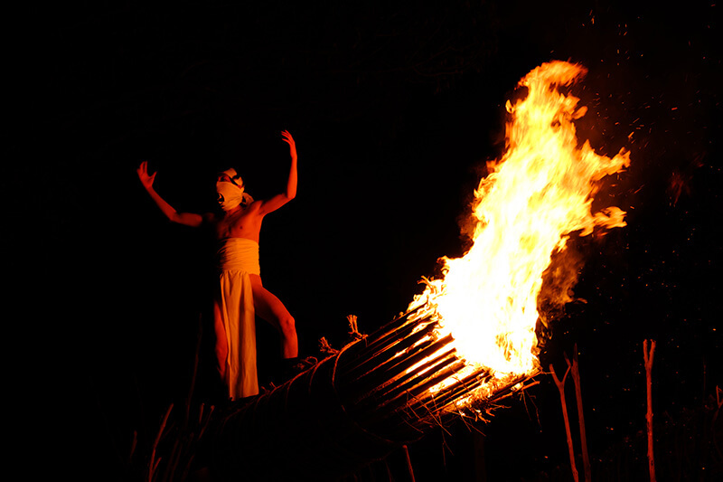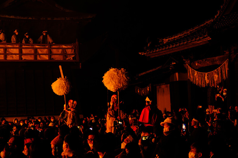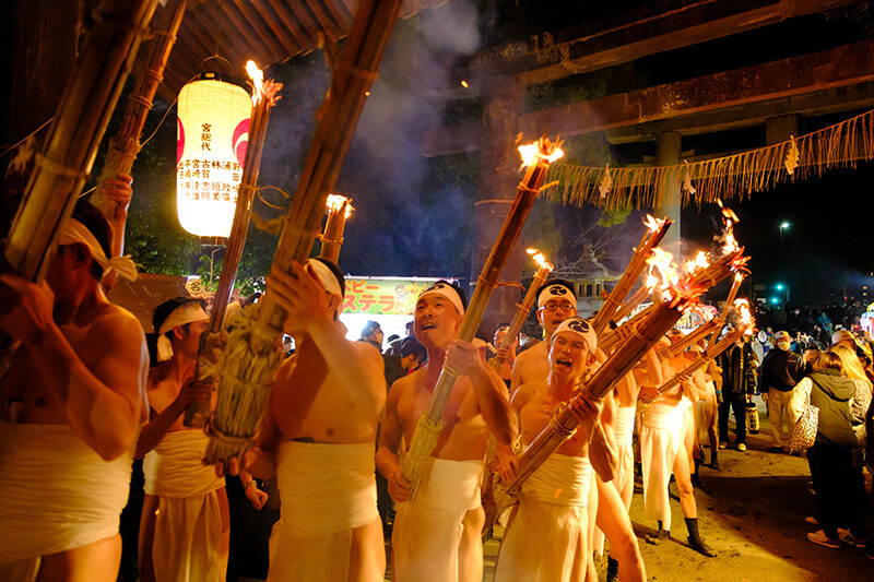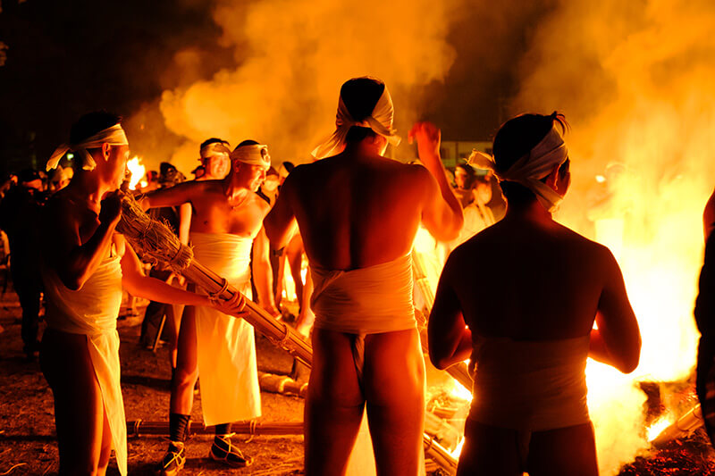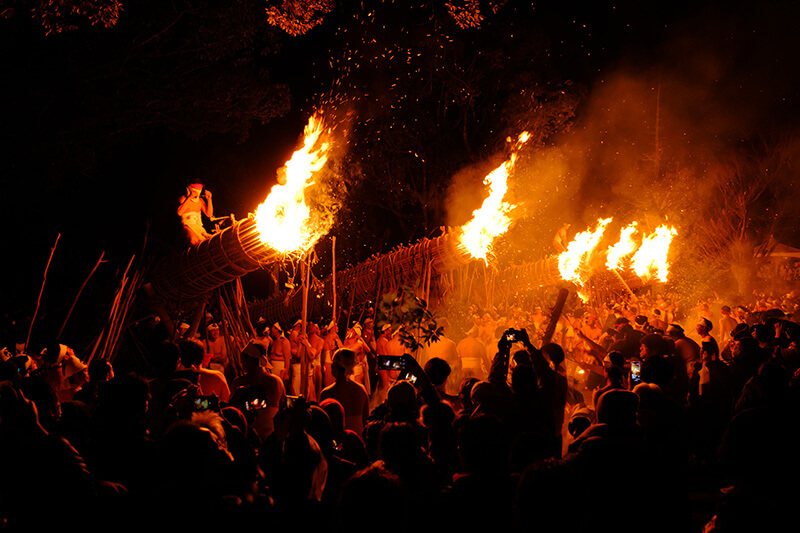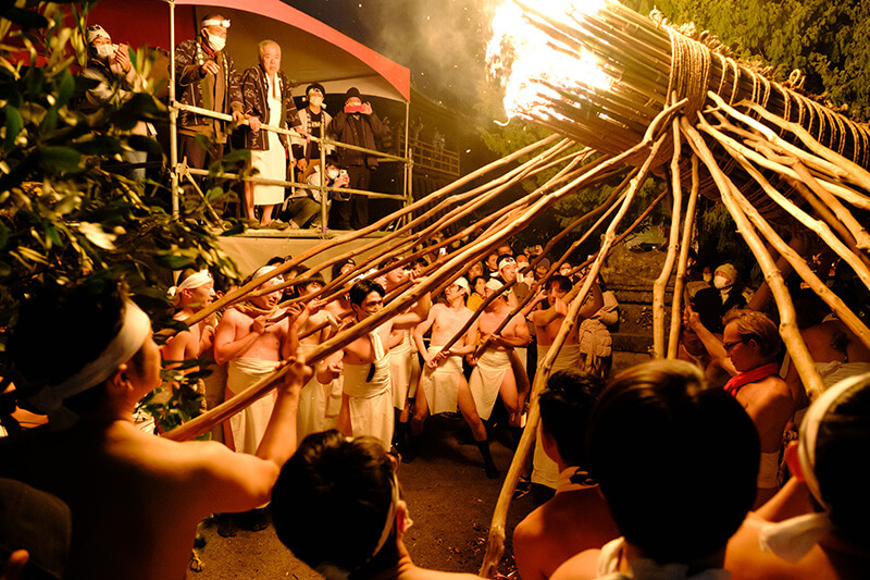 火の中で奮闘する裸衆の凄みや、大松明の迫力に、ひたすら圧倒され続けた一日。そういった荒々しい側面も鬼夜の大きな魅力ではありますが、裏側で淡々と進行する鬼の神事の神秘性もまた、この祭りの奥深い魅力のひとつです。明と暗、動と静、二項対立のモチーフが祭りの重要な局面に現れ、見るものにミステリアスな暗示を与えます。謎めく鬼夜の全貌を確かめたい! そう思って、一度ならず、二度、三度訪れたくなるお祭りでした。