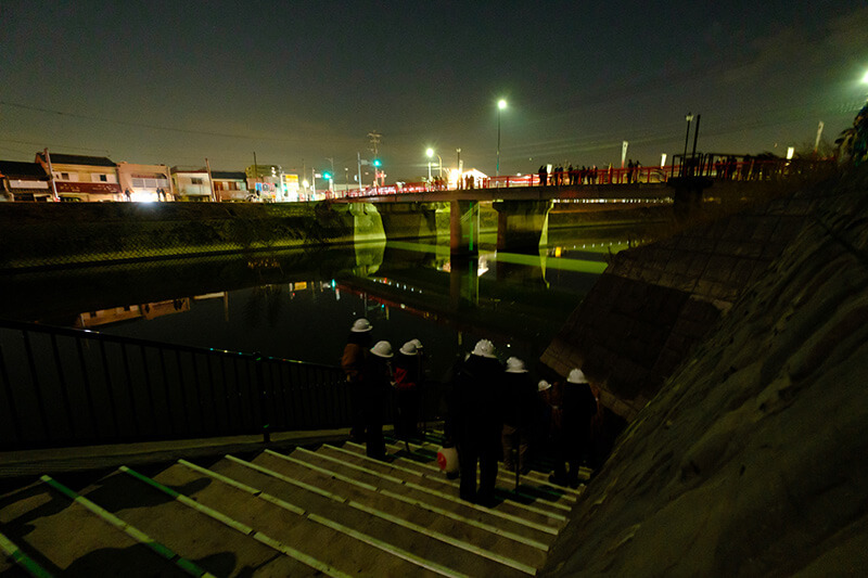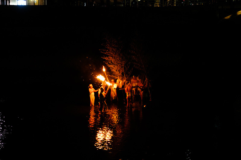 午後8時頃になると、裸衆は再び移動を始めます。目指すのは、神社の前を流れる広川に設けられた「汐井場(しおいば)」です。