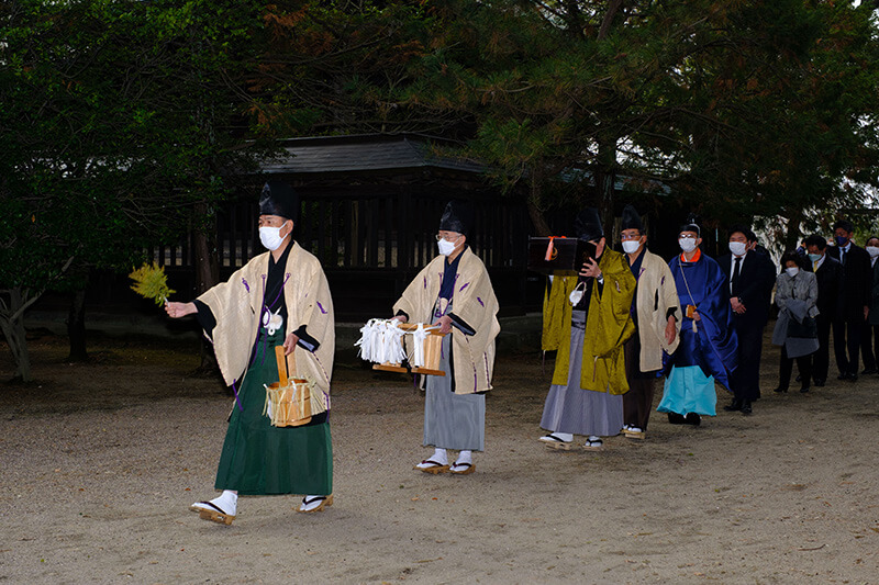 鬼堂に到着すると、ここでも神事が行われます。神事が終わると、例年は直会が催されるそうですが、今年は新型コロナウイルスの状況を鑑みて、直会はなしとなりました。