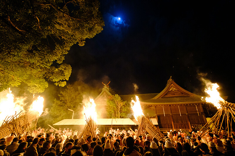 2023年1月7日、福岡県久留米市大善寺町の「大善寺玉垂宮」にて、日本三大火祭りのひとつにも数えられるお祭り「鬼夜(おによ)」が3年ぶりに開催されました。6本の大松明が夜空を焦がした、大迫力のお祭りの様子をレポートしたいと思います。