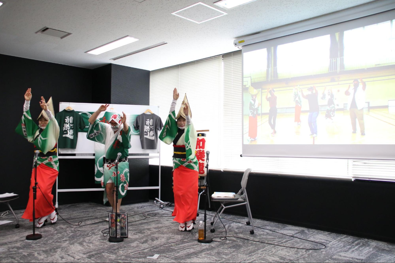 ワークショップ当日はオーストラリアの日本文化ファンをはじめ、国内の祭りファンと和樂連メンバーをオンラインでつなぎ、阿波踊りの演舞や祭りで役に立つ日本語を和樂連がレクチャーした他、日本の祭りや阿波踊りをテーマに英語で交流会を行いました。