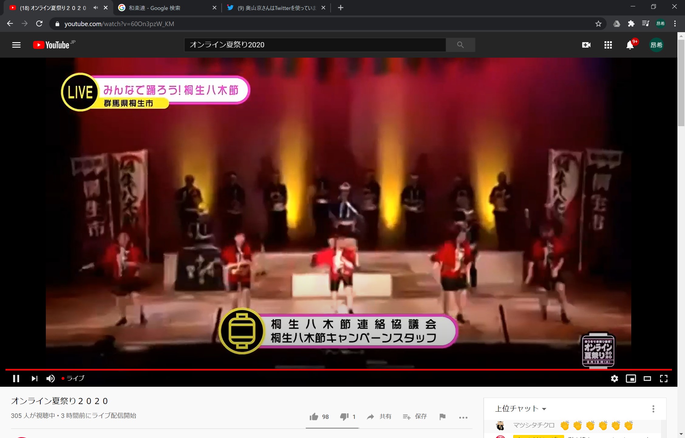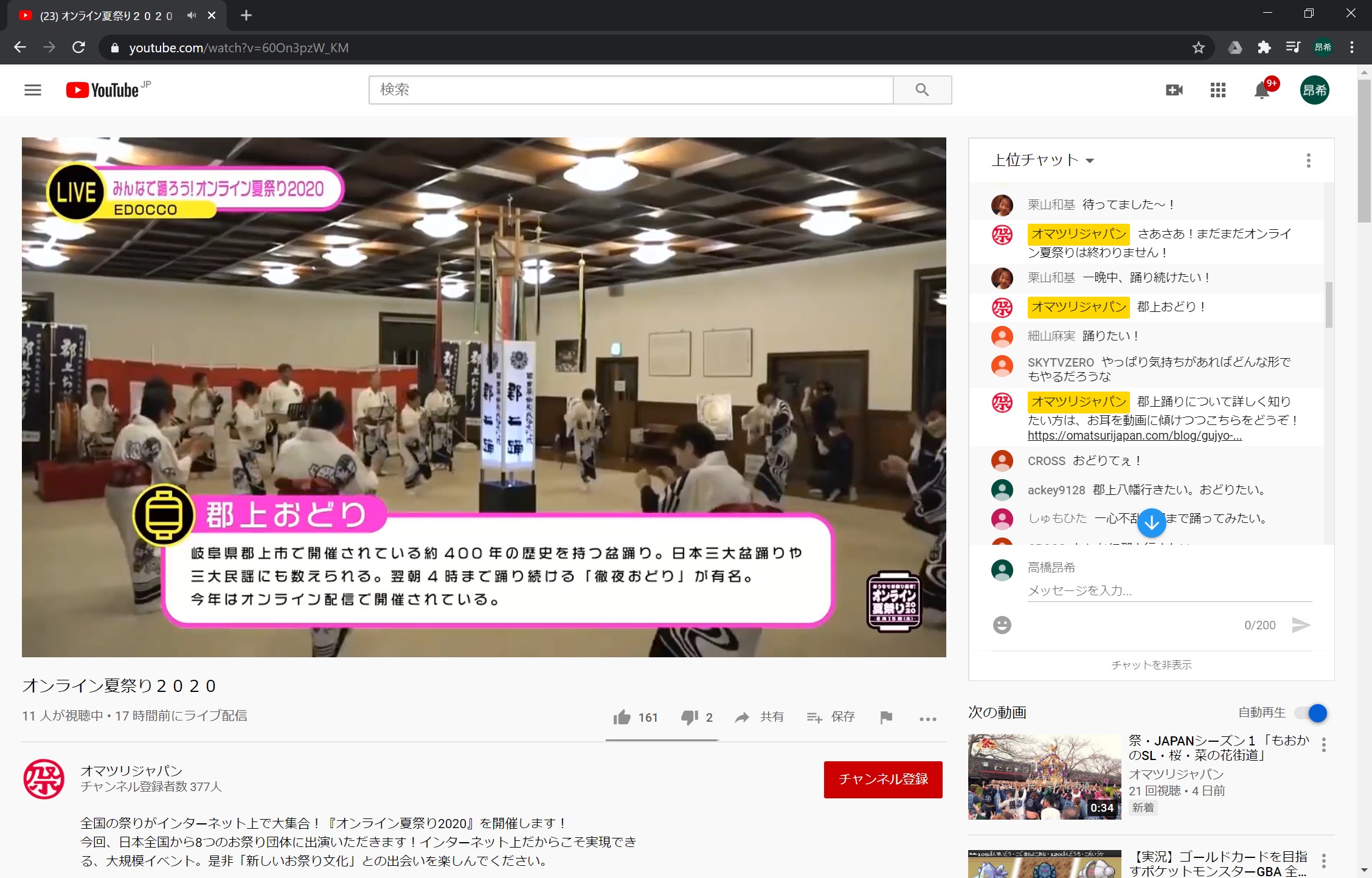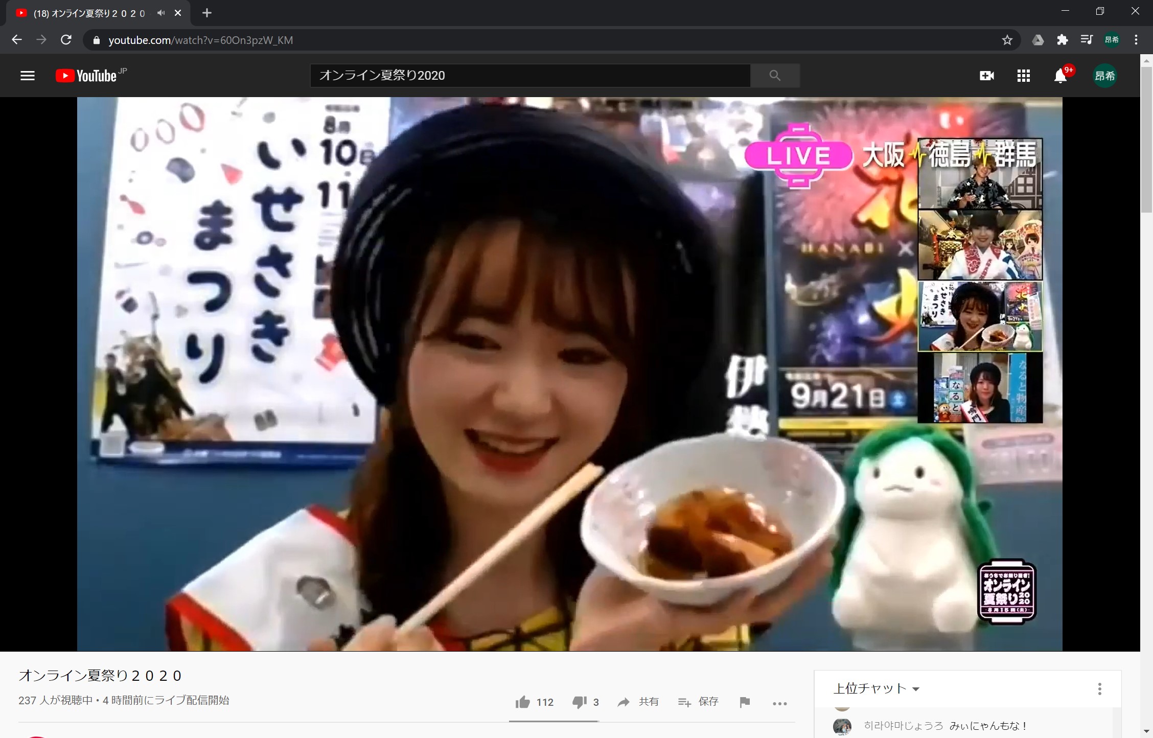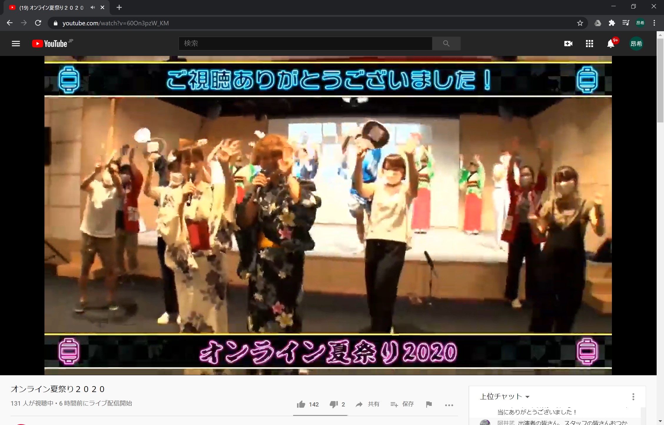 次には配信されたのは、オンライン夏祭り2020のハイライト映像。実はこのハイライト映像、イベントと同時並行で製作された出来立てほやほやの作品。さっきまで行われていたエイサーの場面もしっかり収録されており、ずっと作業をし続けていたスタッフさんの技術力に感服です。
