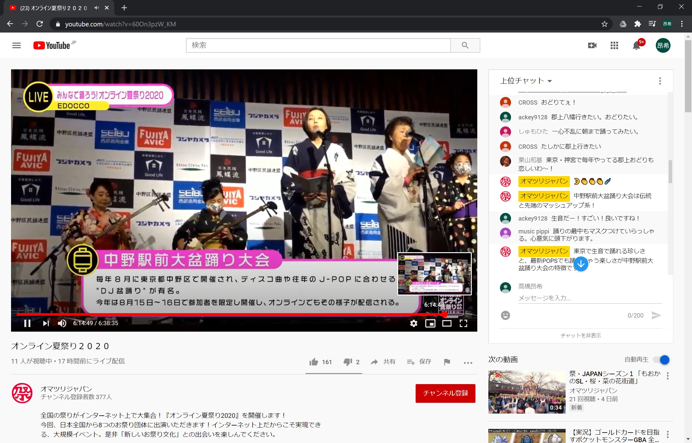 いよいよ最後のコンテンツ、「みんなで踊ろう!オンライン夏祭り2020」が始まりました!
