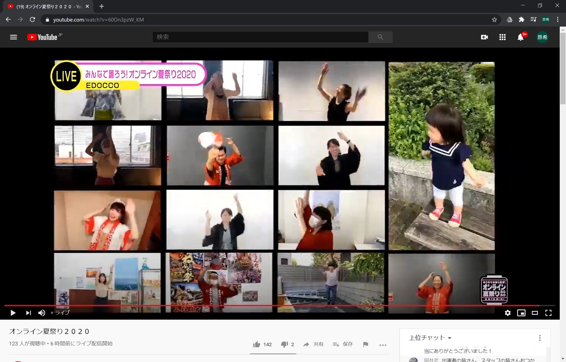 いよいよ最後のコンテンツ、「みんなで踊ろう!オンライン夏祭り2020」が始まりました!