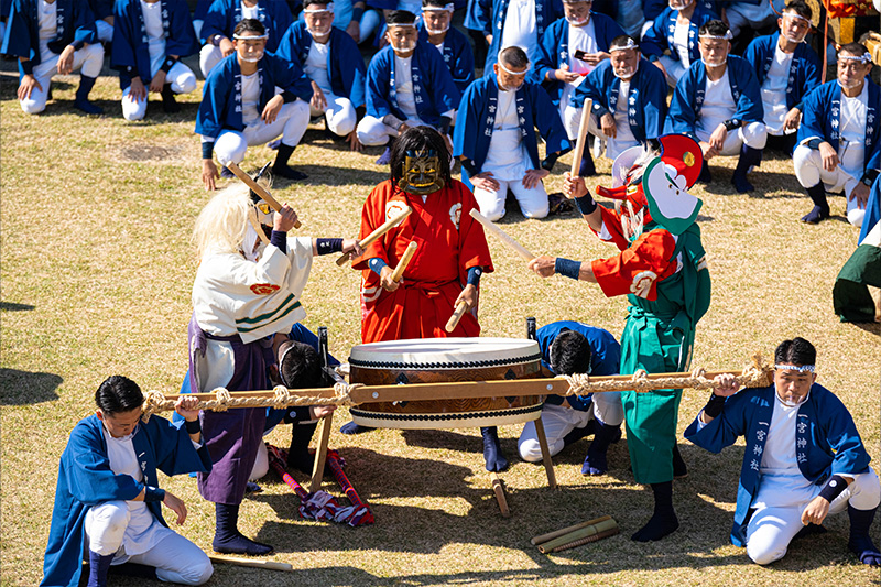 三鬼神とシシの太鼓を鳴らすのは、「ベッチャー太鼓」のメンバー。今回は中学1年生から20代前半までの若いメンバーで構成されていました。メンバーのひとりは「お客さんがたくさん集まってくれてうれしい。尾道の疫病がなくなるように、と思いながら叩いています」と話していました。