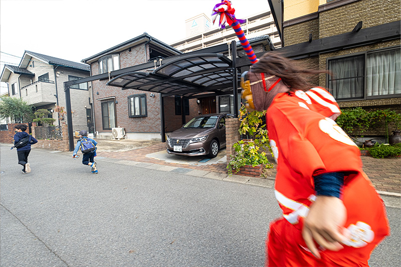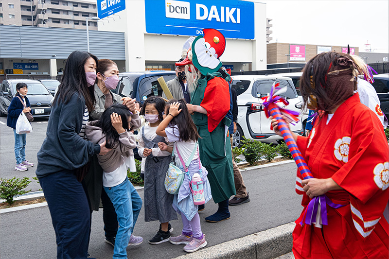 なかには三鬼神の衣装を着た子どもも。「姉が作って、上の子から引き継いだ衣装です」と密かに家族内で受け継がれた衣装という、地元育ちのご家族らしいエピソードも。