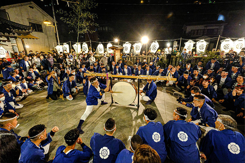 ついに、最後。御神輿が置かれると、保存会の人たちが円陣を組み、その中央でジャズのようにエモーショナルな太鼓の演奏が行われました。今年、無事に御神輿も含めたお祭りが開催されたことを喜んでいるような、この瞬間が終わることを惜しんでいるような太鼓の音。その後神事が行われ、無事、尾道ベッチャー祭りが終演となりました。