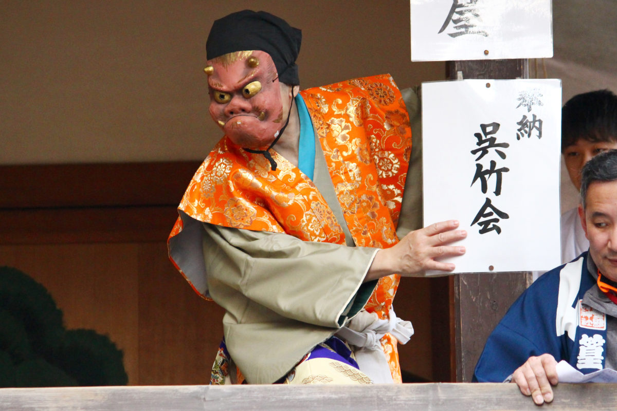 (亮貴さん)「小野照崎神社の節分祭には、参拝者の方に楽しんでもらう工夫がいくつかあります。例えば鬼が登場して、名乗りを上げる寸劇です。色とりどりの顔を持つ複数の鬼が神楽殿に登場して、参拝者へ見栄を切った後に本殿へ攻め込みます!攻め込んできた鬼に対して、本殿側の人が豆を撒いて撃退。このような攻防が、豆まきが行われる最中に9回も行われます。あまりこう言うのは他所ではないのではないでしょうか?」