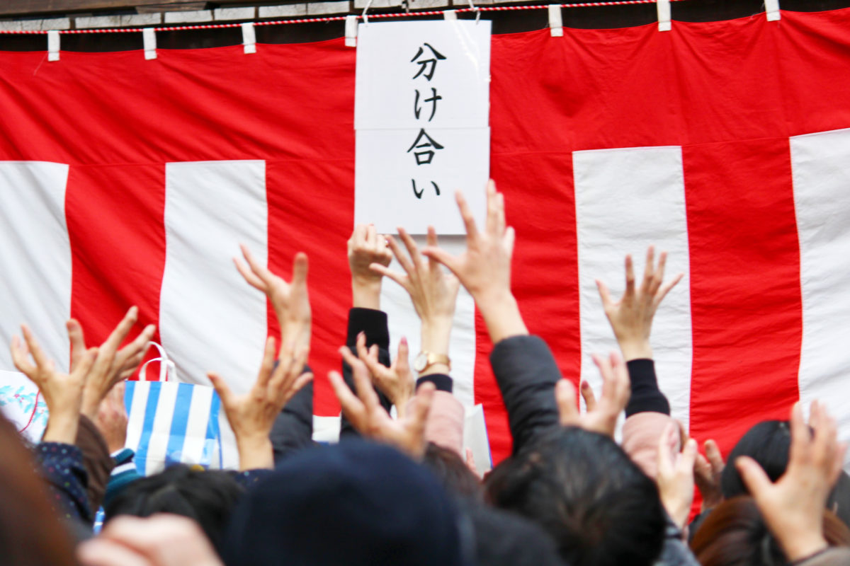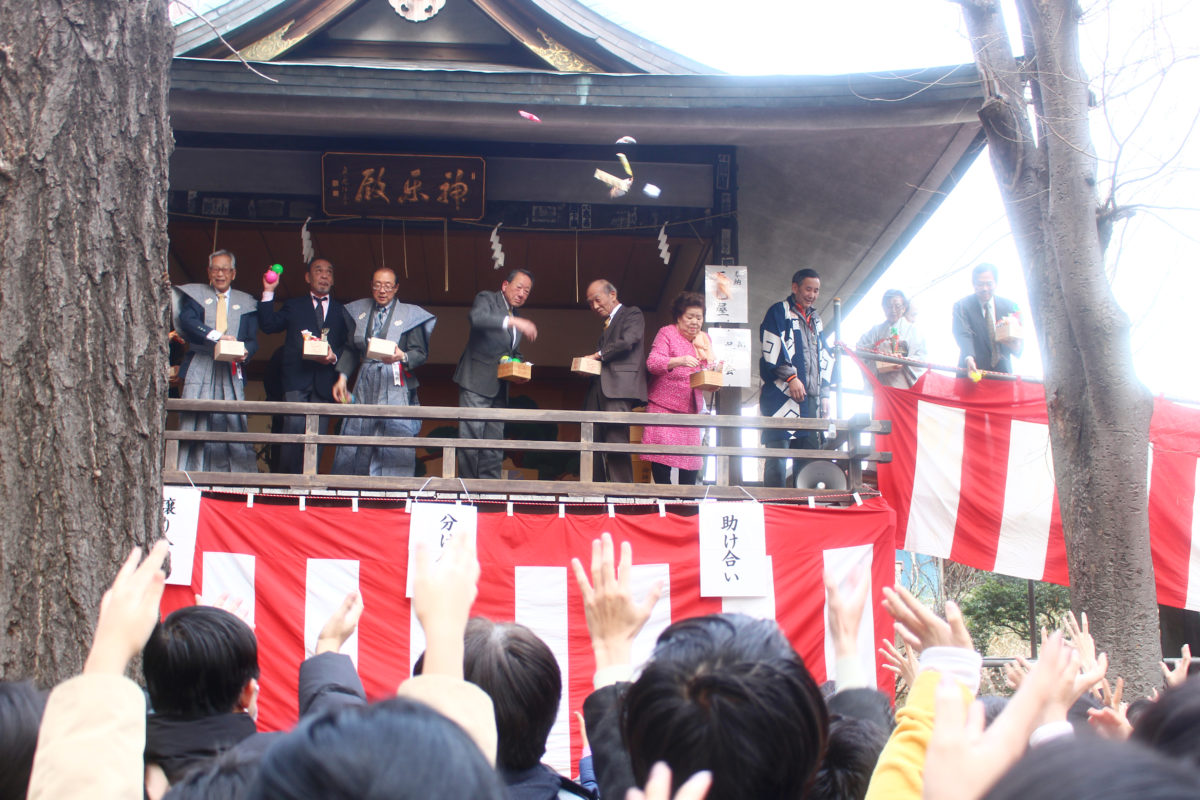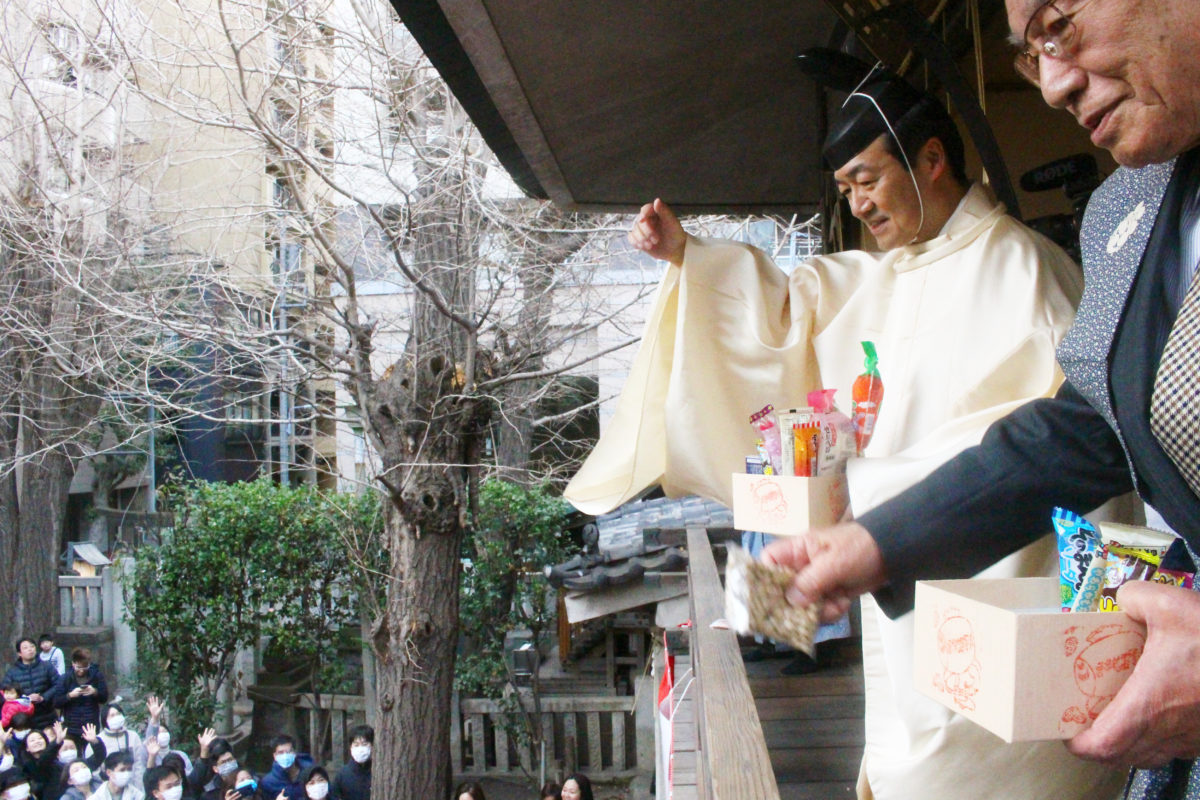 小野照崎神社の豆まきでは、複数回繰り返し豆まきが行われます。たくさん欲しくなるところではありますが、分け合いの精神が大事ですね!