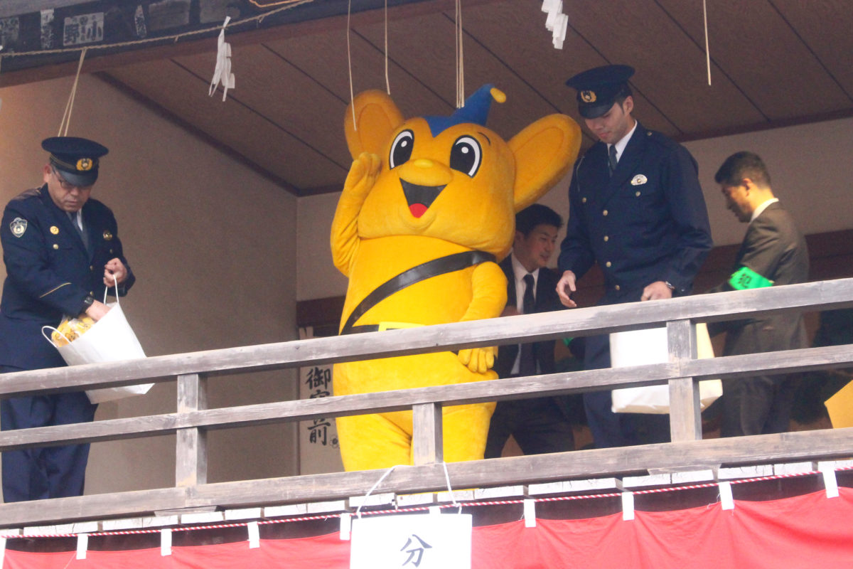 さあ、豆まきがはじまりました!お話しを聞かせていただいた宮司さんも豆まき用の装束に着替えられて参加しています!