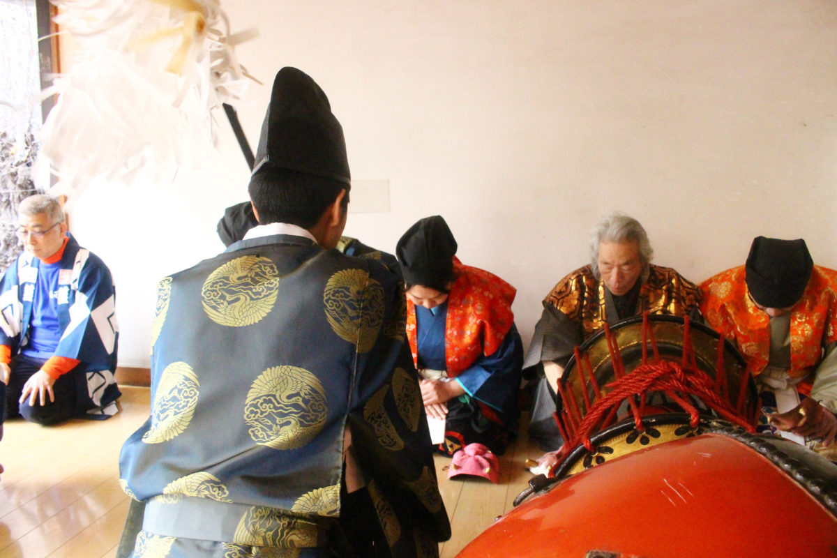 16時を目前にしたタイミングで、いよいよ一般の方を交えた豆まきがはじまります!まずはお祭りを催行する皆さまをお払いです。