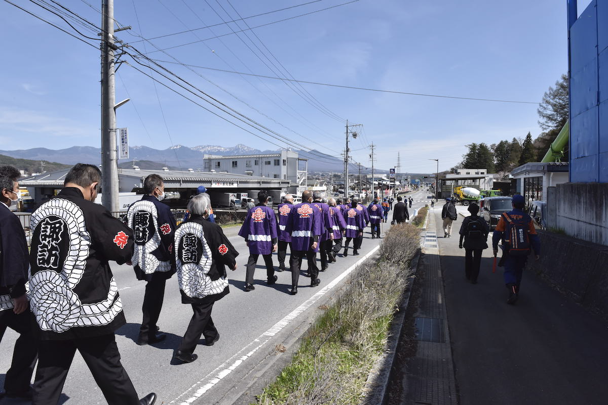 とても晴れていて空気が澄んでいる。八ヶ岳がくっきりと見える中で、行列はゆっくりと進んでいく。