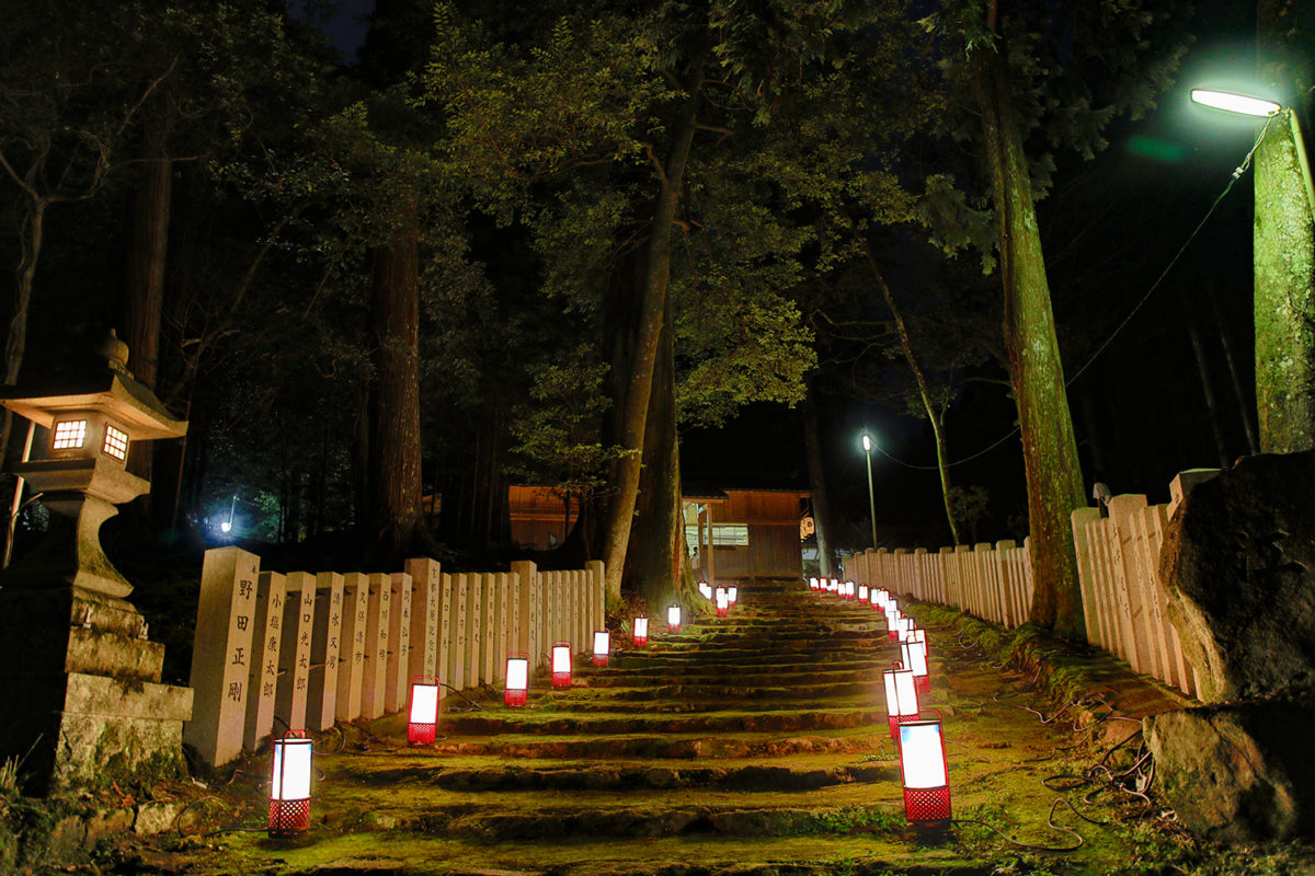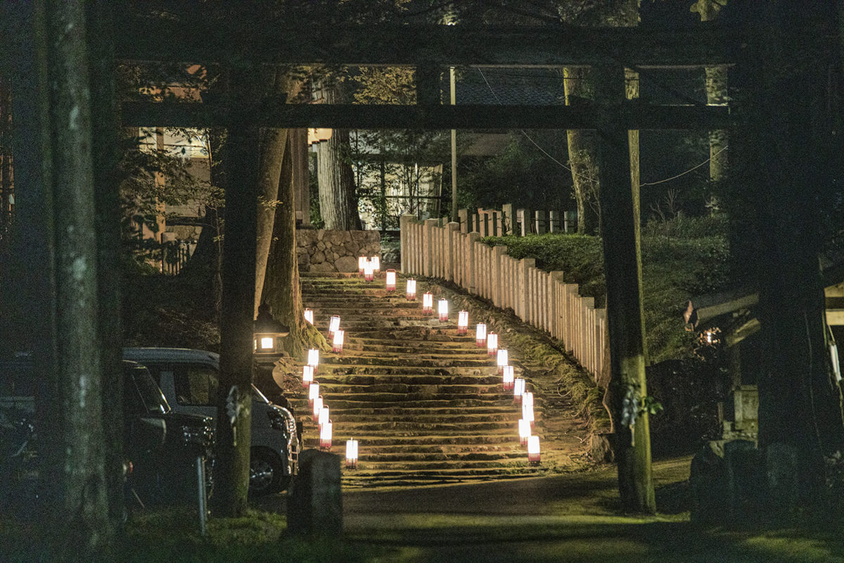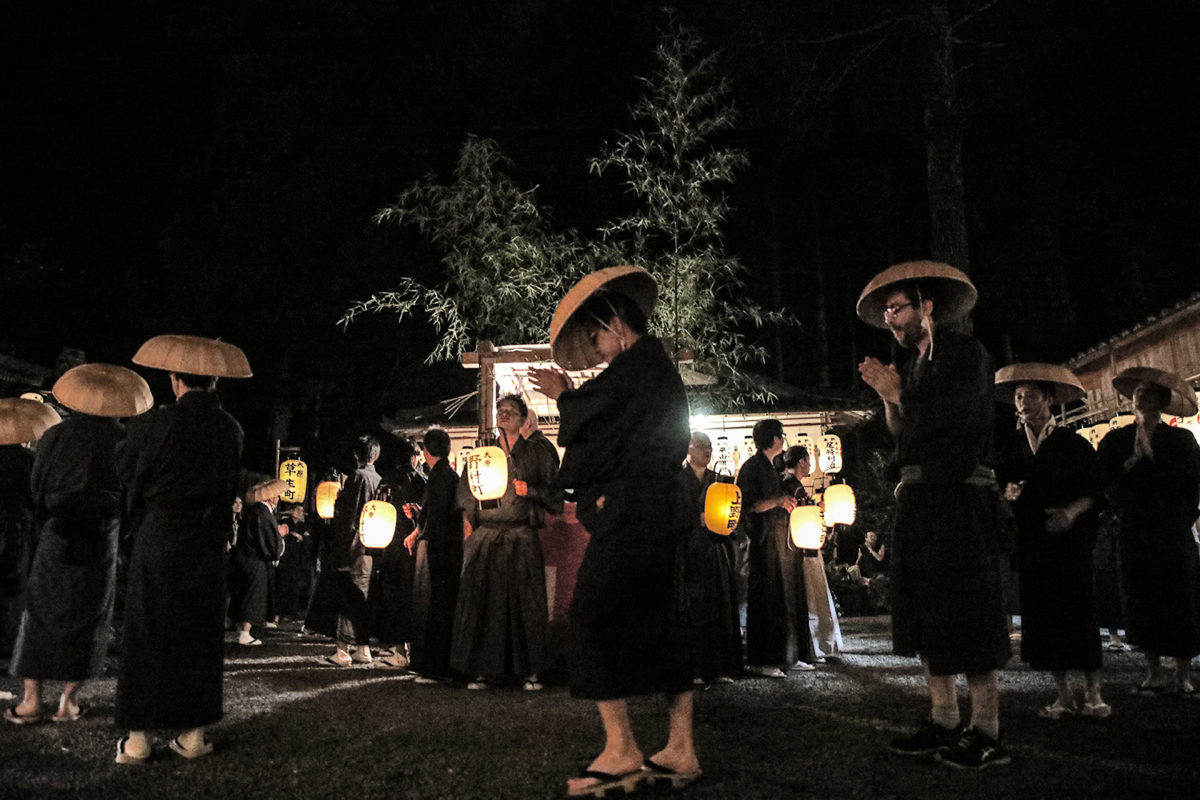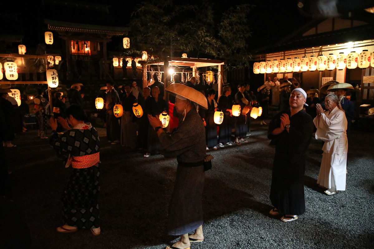 暗闇の中、音頭取りが「ヤートコセ」を謡いながら、提灯を持った人々が階段をゆっくりとのぼりはじめます。