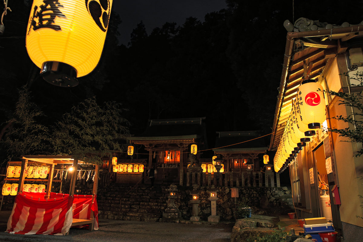 提灯の灯りに彩られた境内では子供たちが追いかけっこをしている笑い声と太鼓の音だけが響き渡りまする。