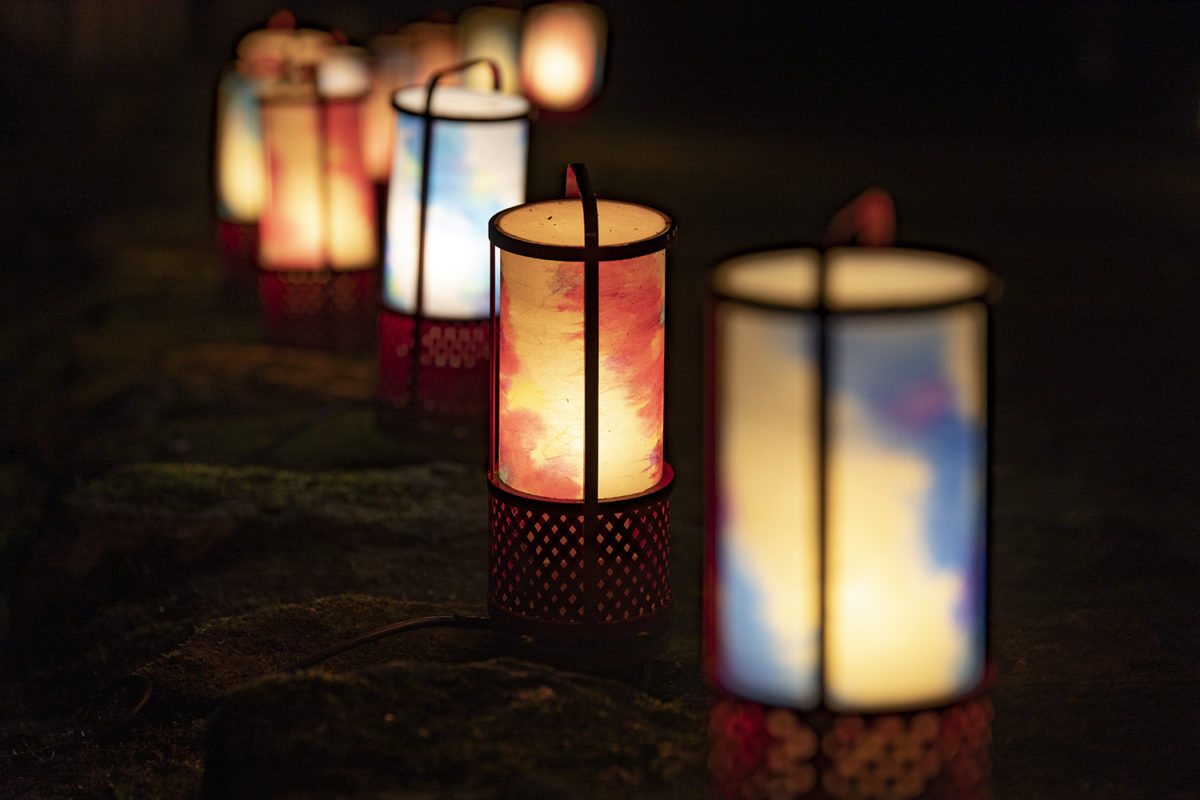 東山や嵐山の花灯路で使われている、おなじみの灯籠が足下を照らします。