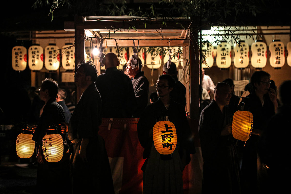 「小提灯」を持った町内の担当者が、やぐらの周りを囲みます。