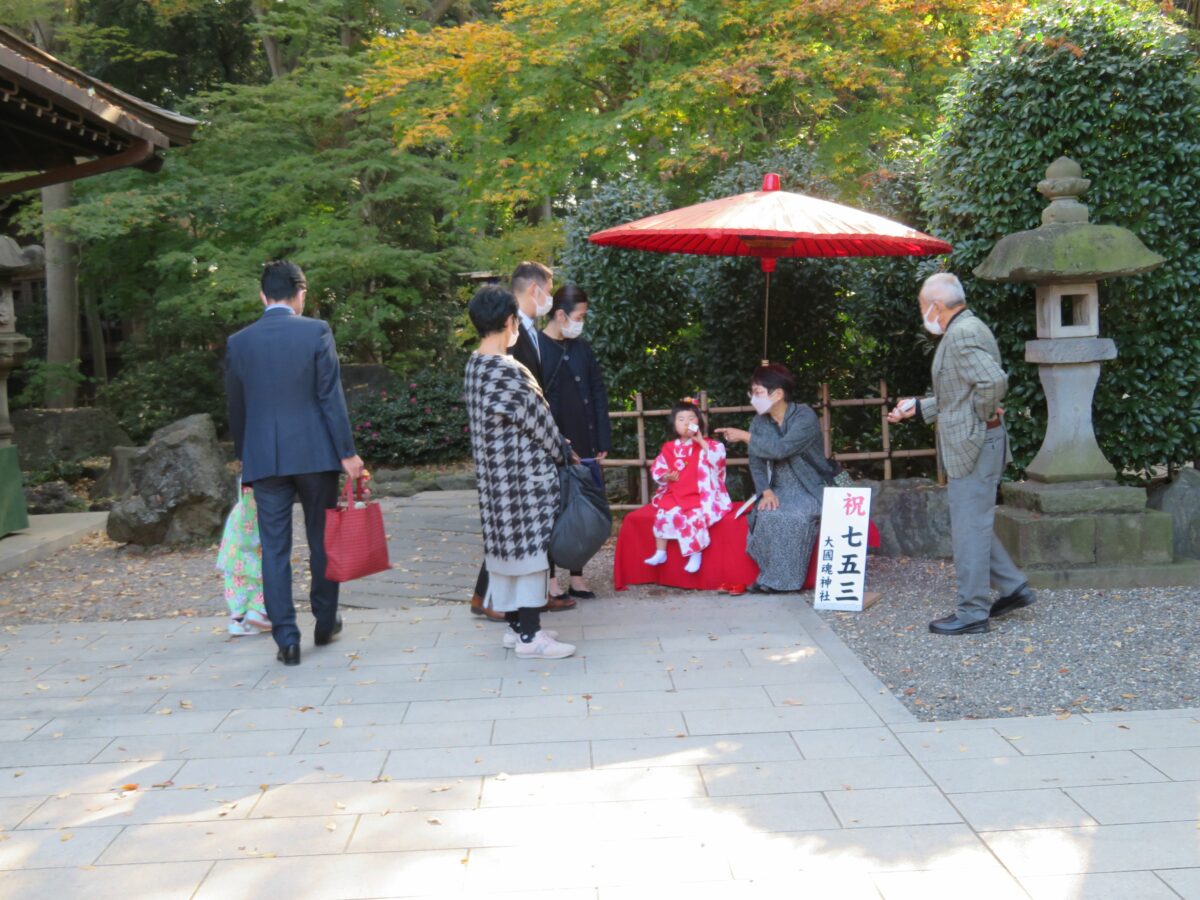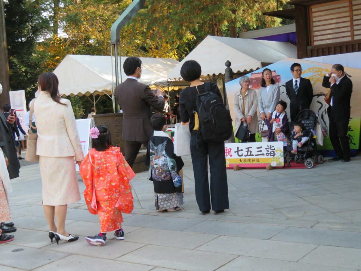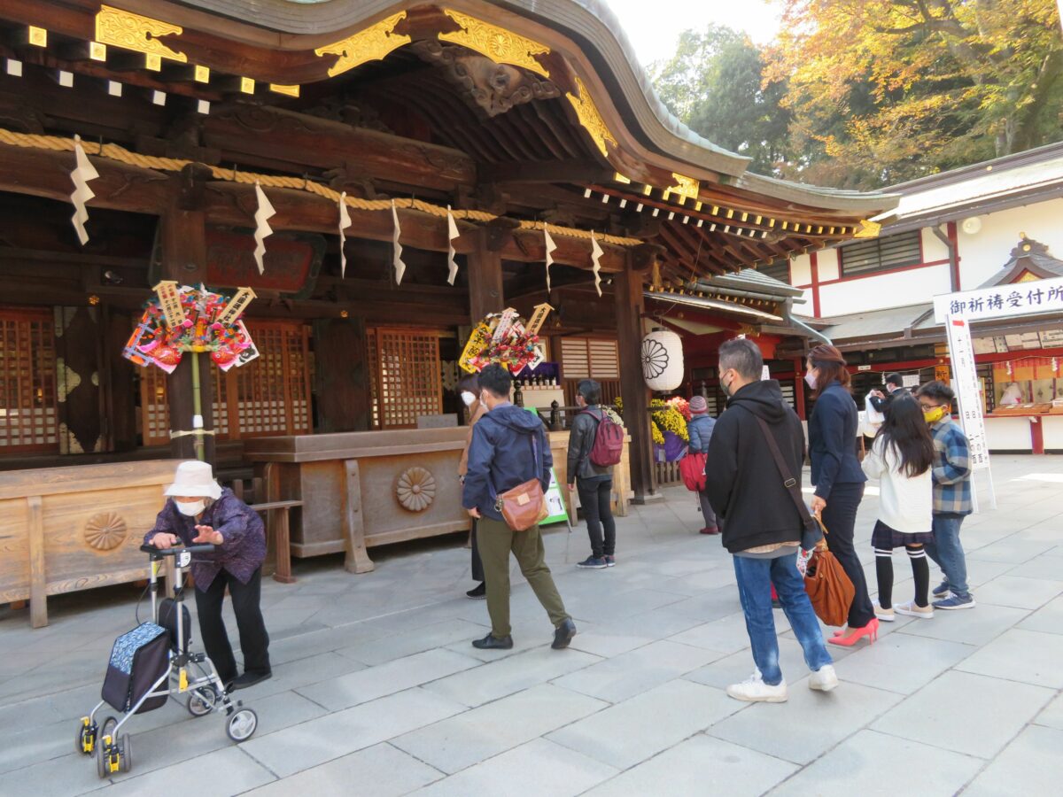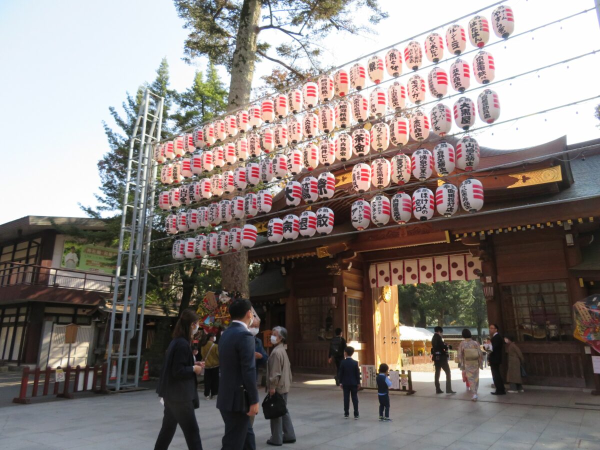 11月には、酉の市、七五三詣、菊花展も開催されます。特に七五三詣に訪れる親子が境内に溢れ、拝殿の周囲には長い行列ができます。境内のあちこちに記念撮影用のスポットが準備されるのです。
