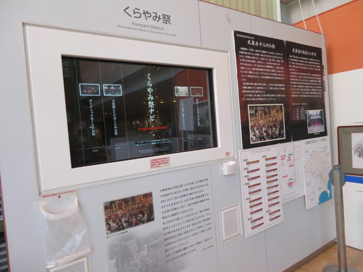 境内に建つふるさと歴史館の「くらやみ祭」の紹介コーナー